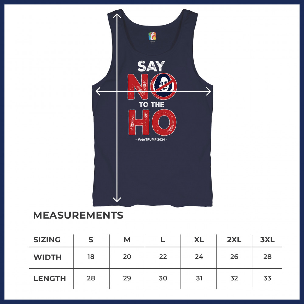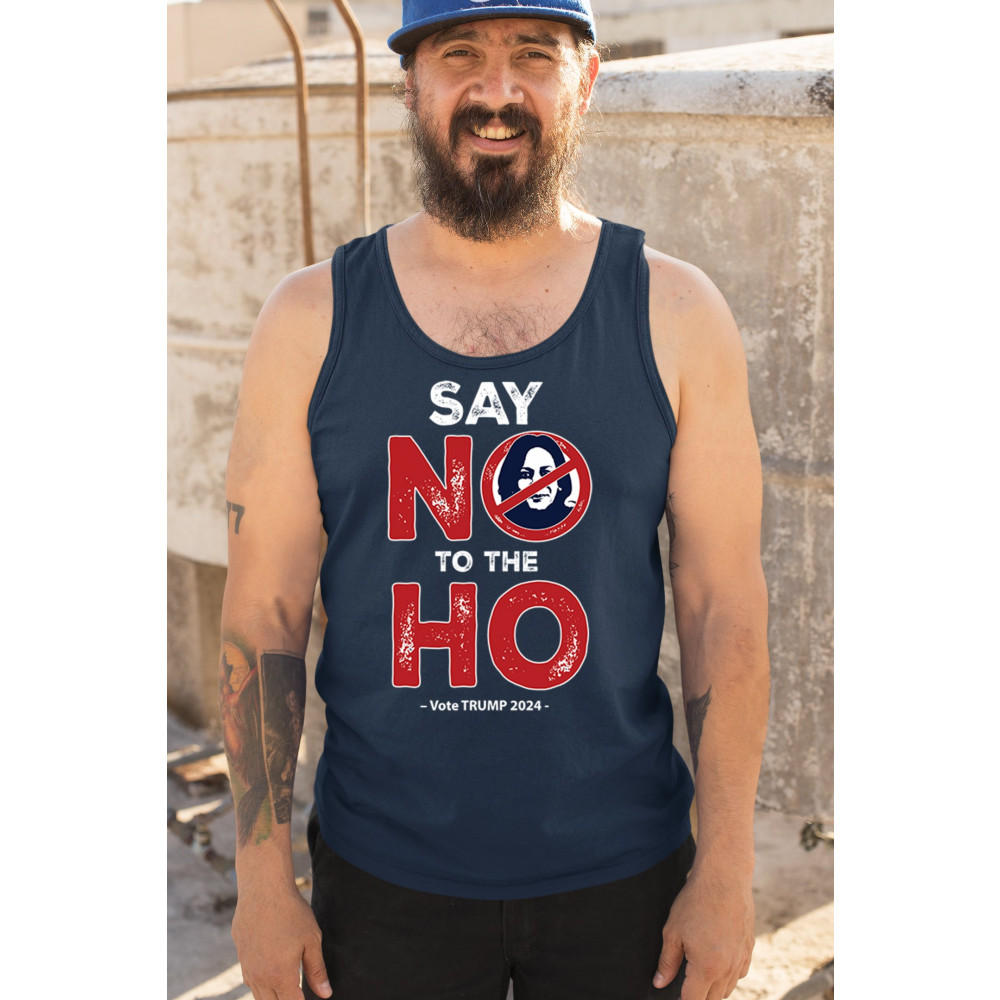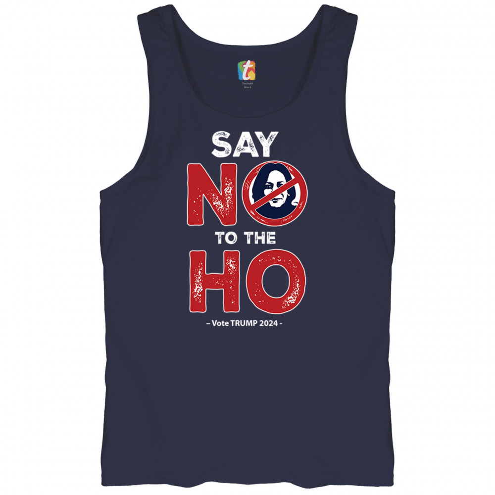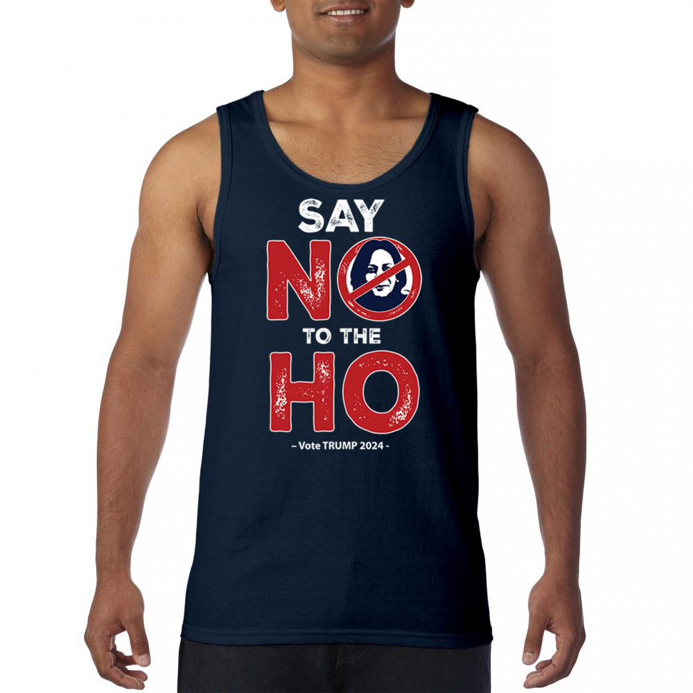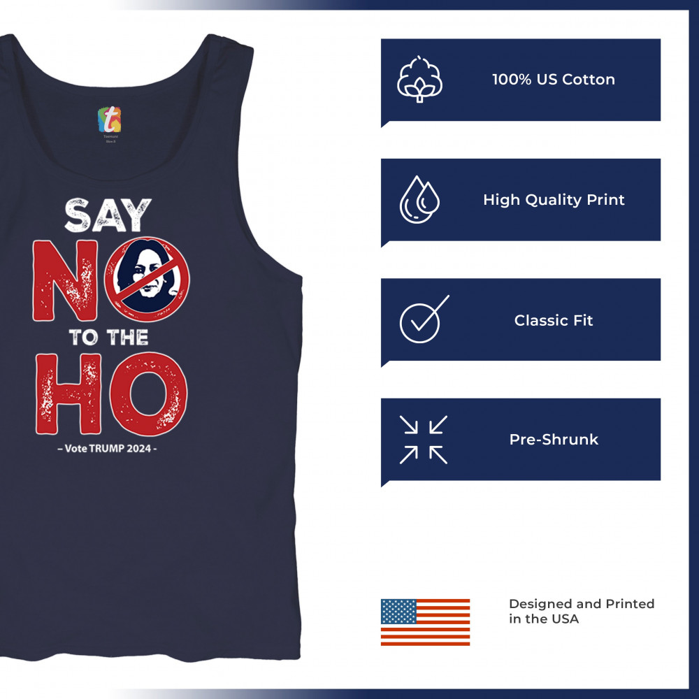 Show your conservative spirit with the "Say No to the Ho" print, perfect for rallies or daily wear. Support Trump-Vance 2024 and Make America Great Again.