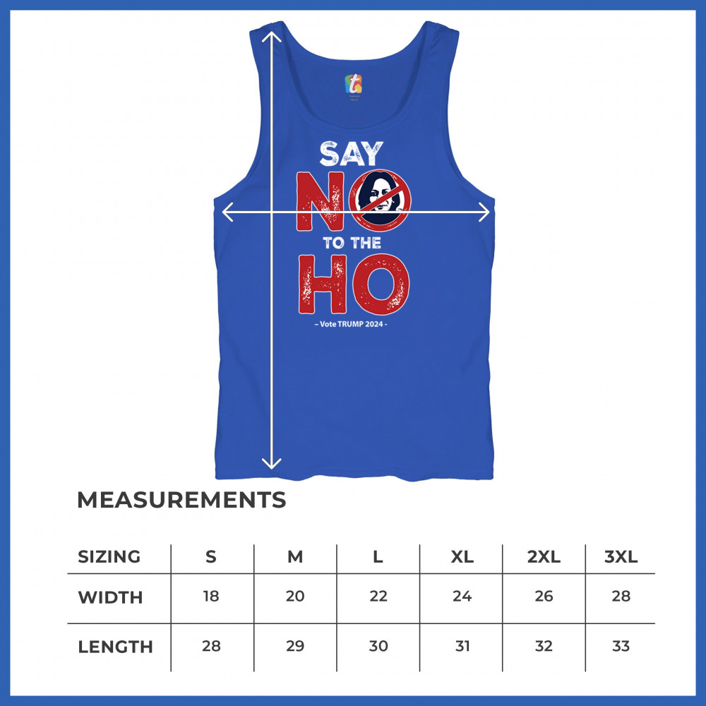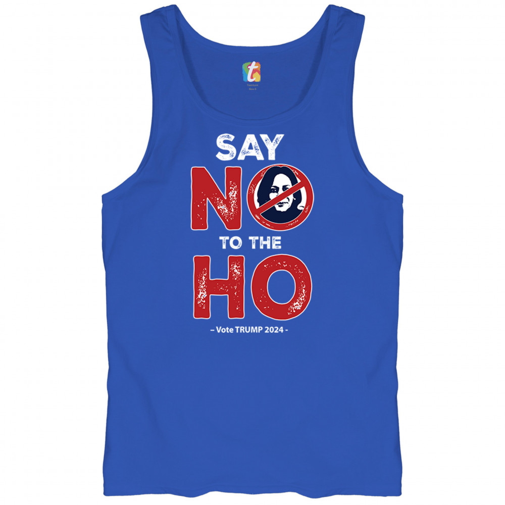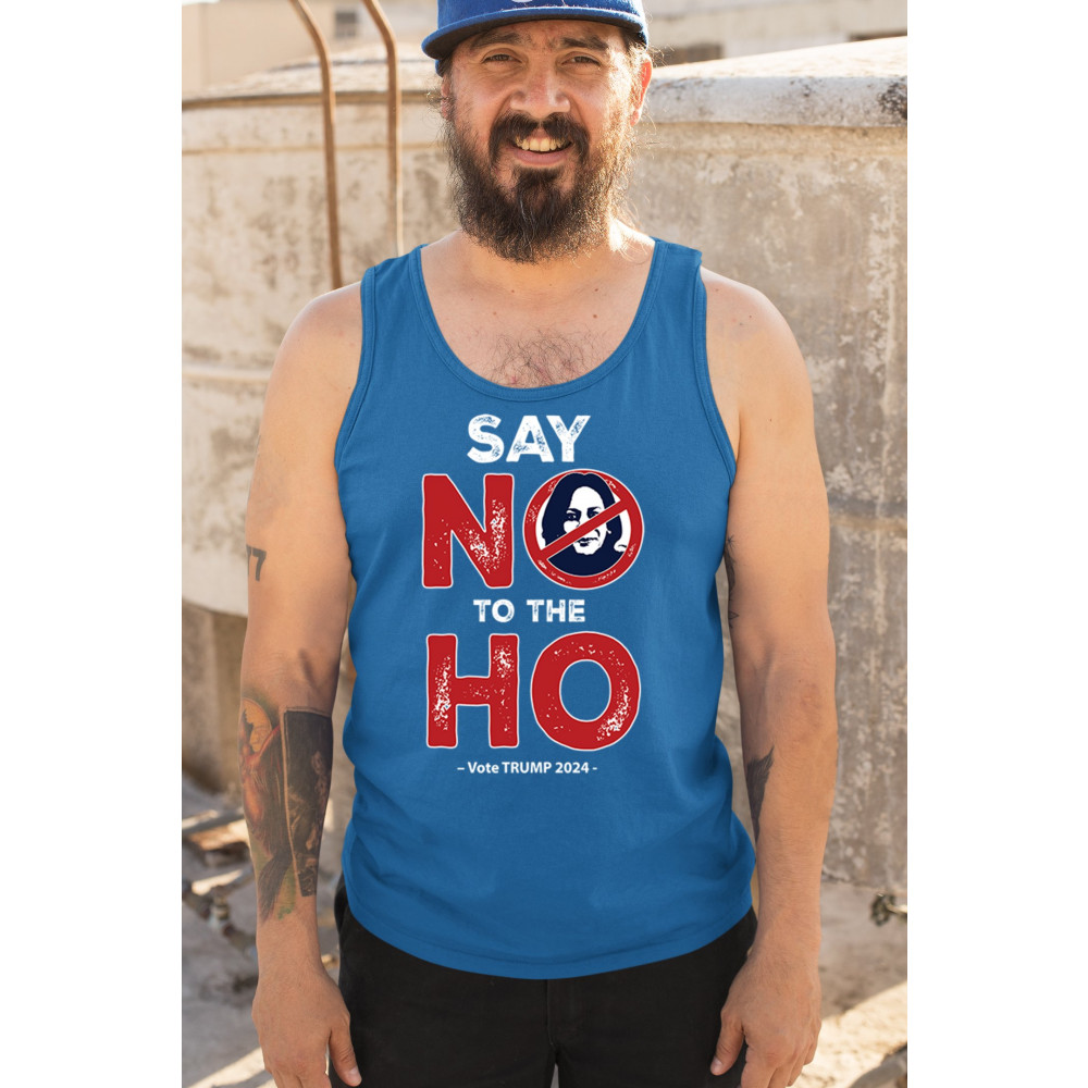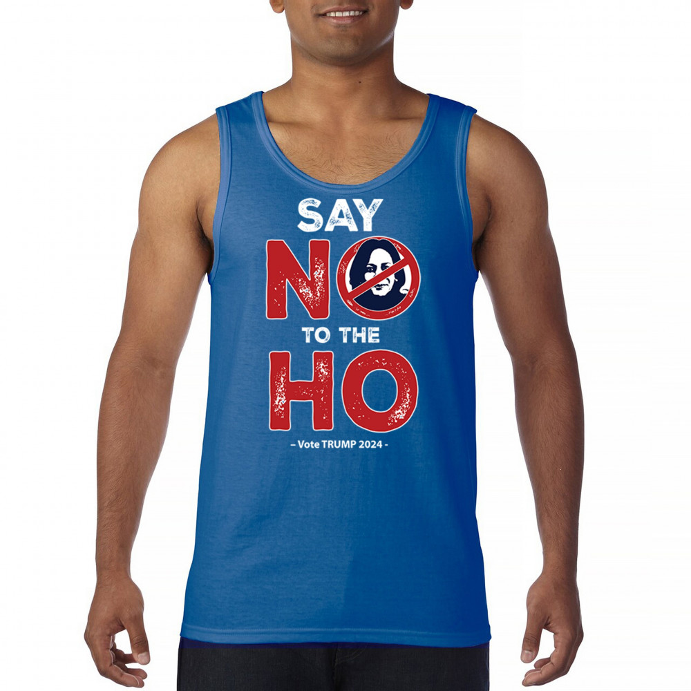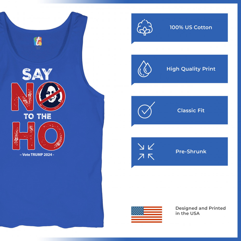 Show your conservative spirit with the "Say No to the Ho" print, perfect for rallies or daily wear. Support Trump-Vance 2024 and Make America Great Again.