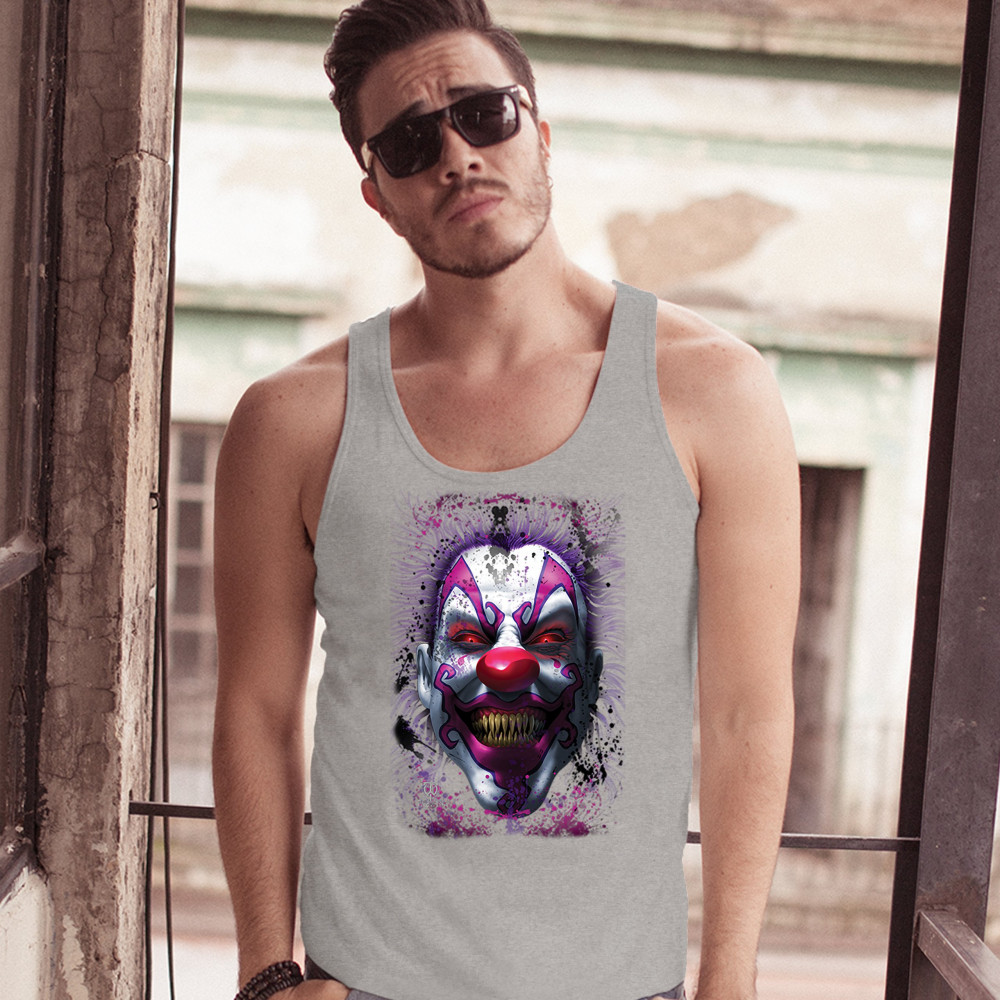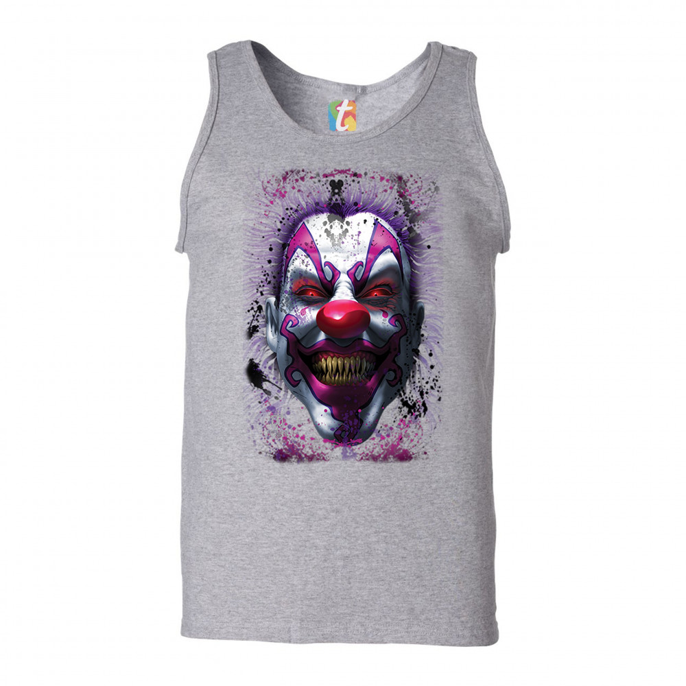 SCARY CREEPY GRINNING CLOWN tank top spooky halloween horror men's top gray