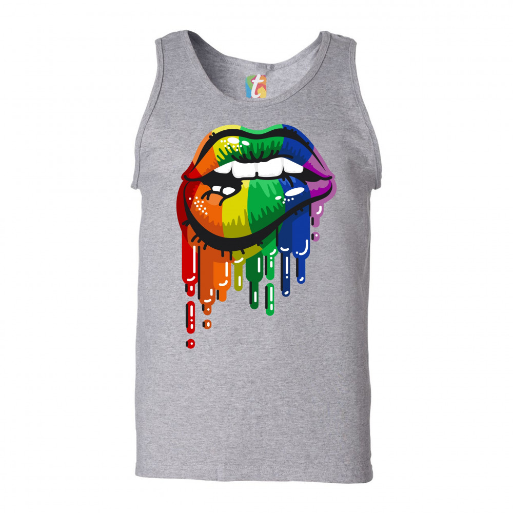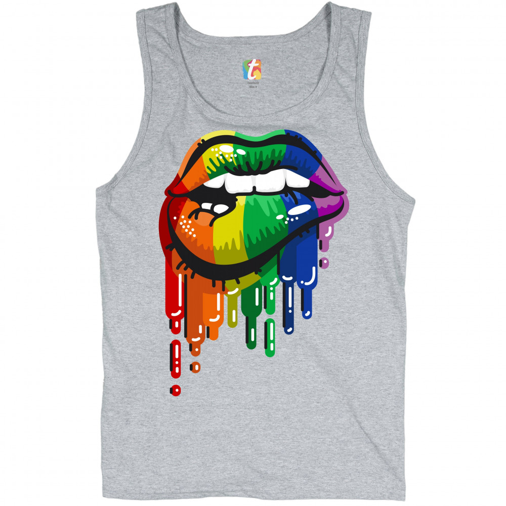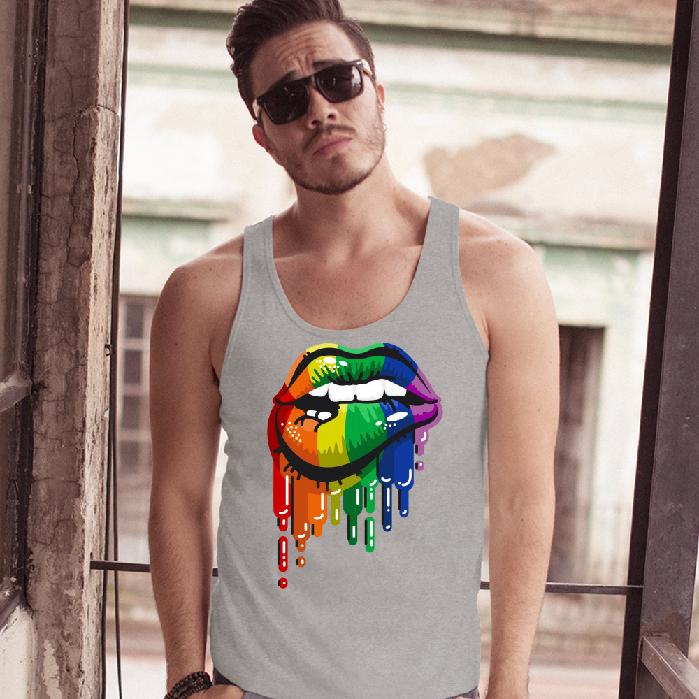 SEXY MELTING RAINBOW LIPS tank top lgbt queer gay pride love wins men's top gray