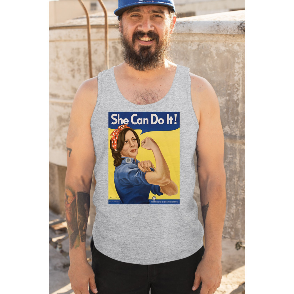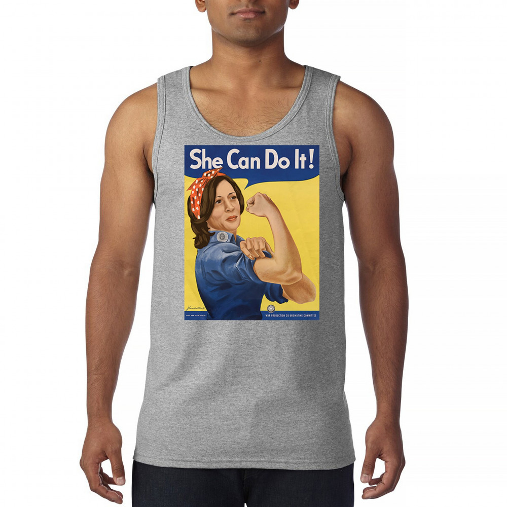 Support Kamala Harris in her 2024 presidential bid with this powerful "She Can Do It!" design. Inspired by the iconic Rosie the Riveter, this artwork is a symbol of strength, equality, and determination. It's the perfect choice for anyone who believes in Harris’s vision for a better future. Whether at rallies, events, or in your daily life, this design will proudly display your commitment to justice and progress. Let’s unite under the banner of equality and aim for victory together.