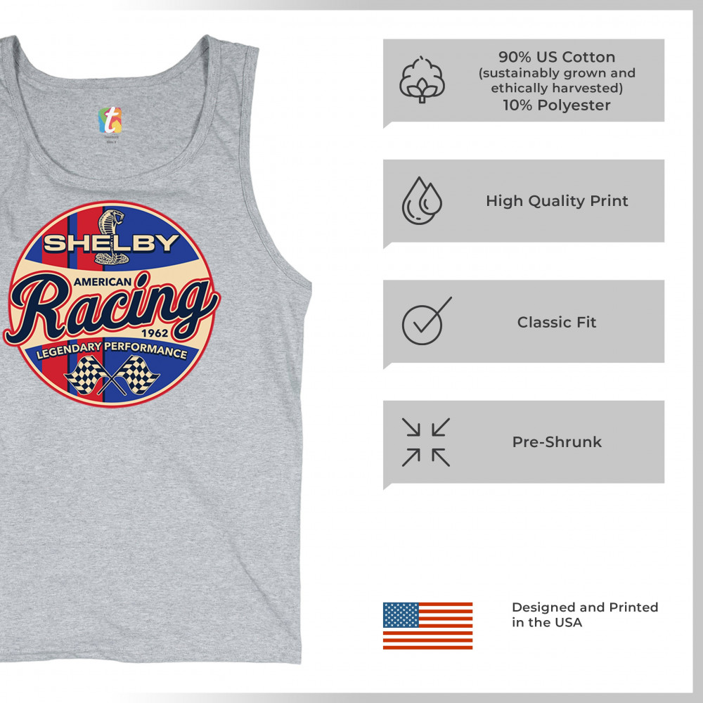 Rev up your wardrobe with our Shelby American Racing design, a tribute to 50 years of Ford Mustang glory and Carroll Shelby's racing legacy.