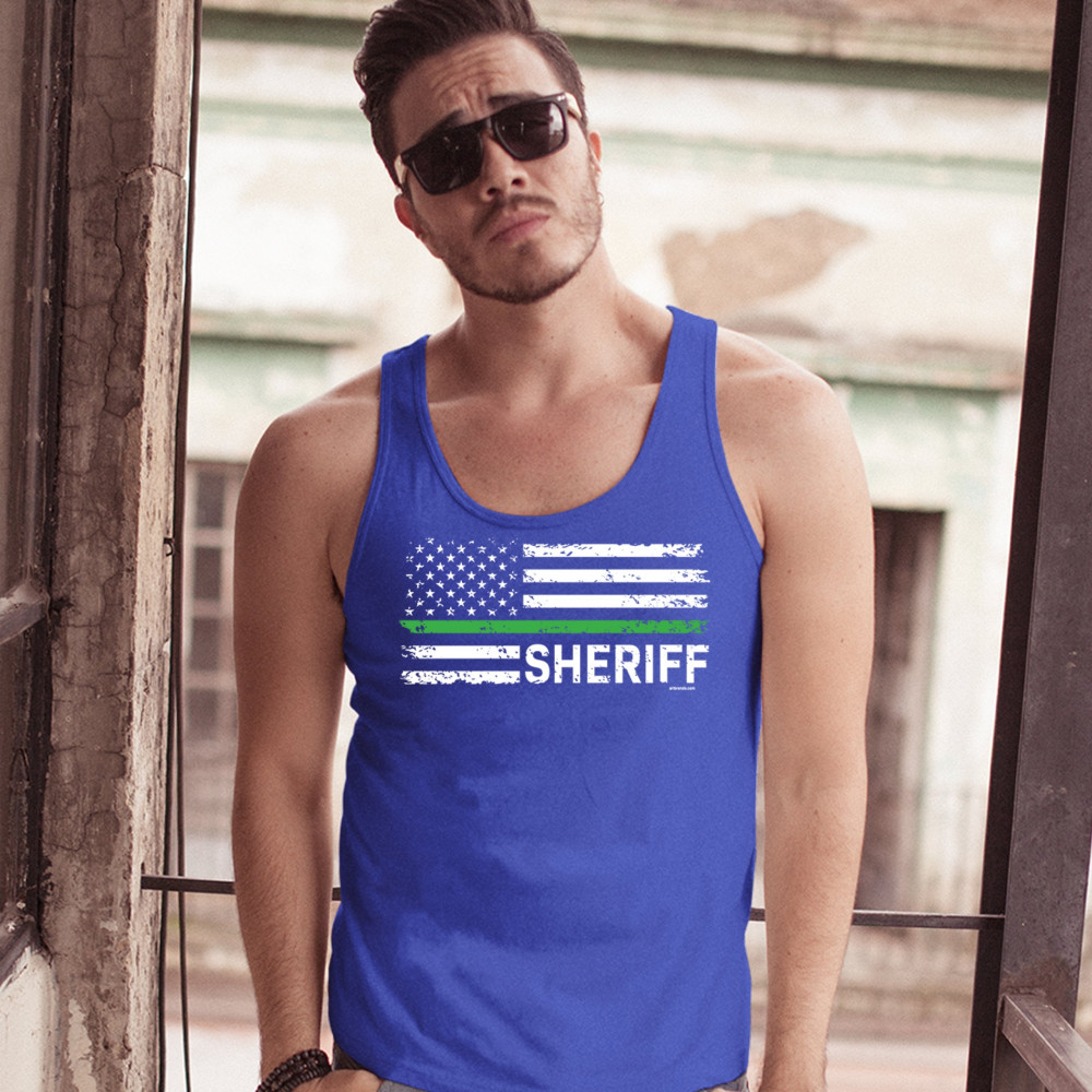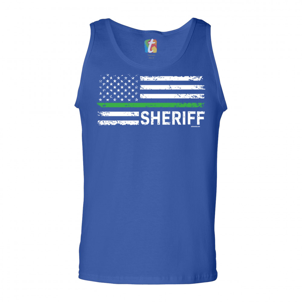 SHERIFF DISTRESSED AMERICAN FLAG tank top first responders patriotic men's top royal blue
