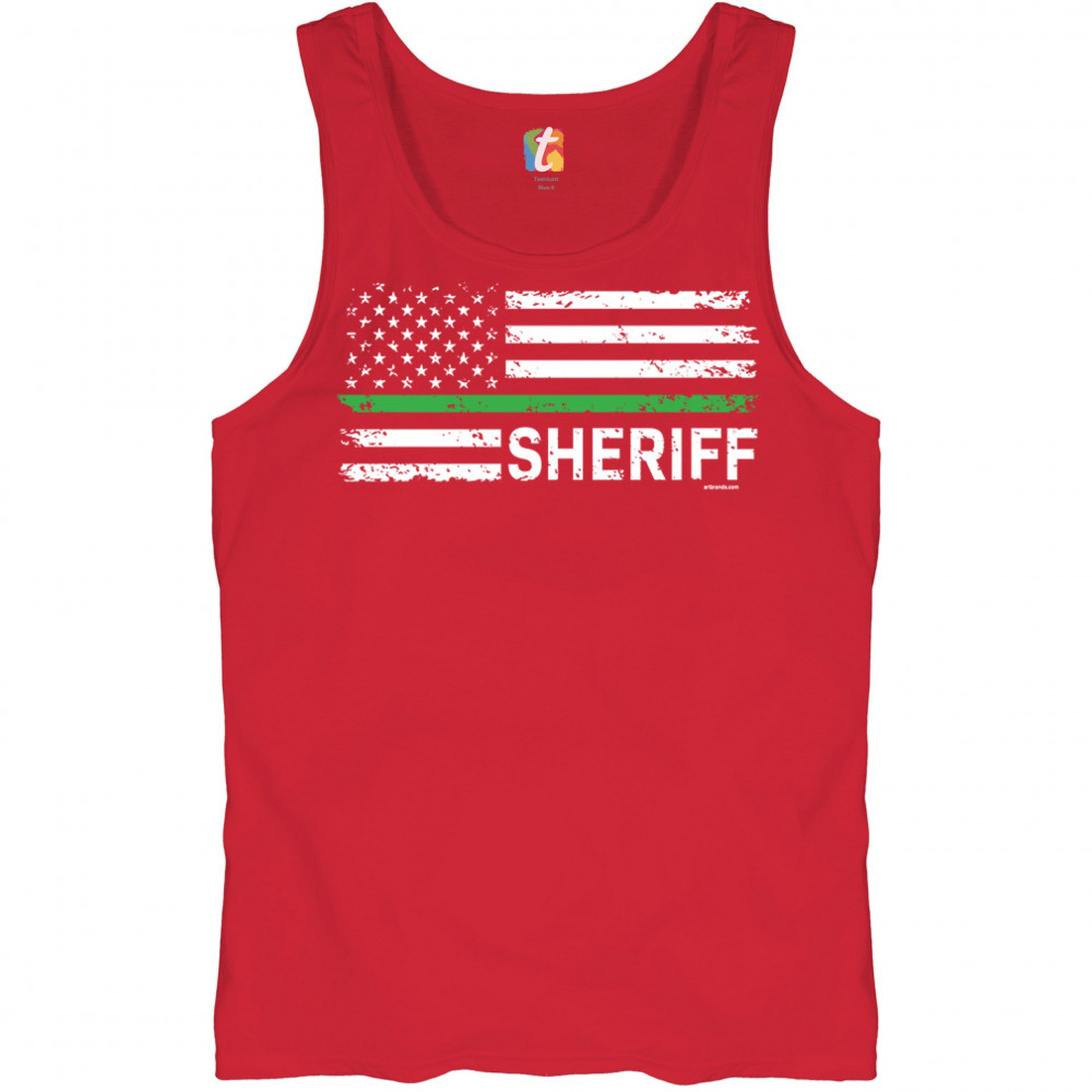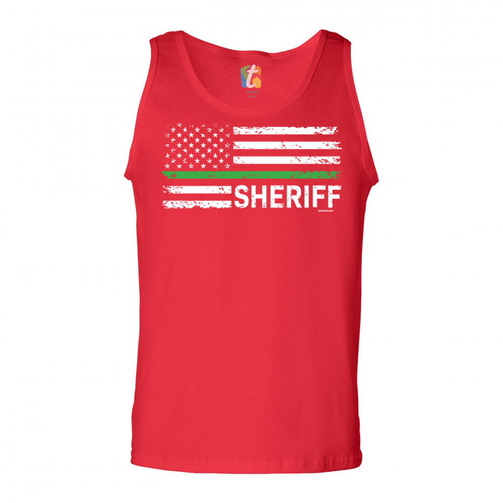 SHERIFF DISTRESSED AMERICAN FLAG tank top first responders patriotic men's top red
