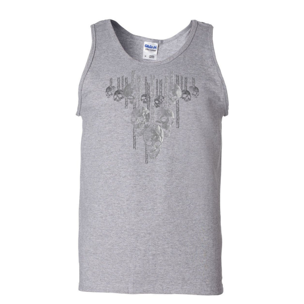 SKULLS HANGING ON CHAINS tank top death creepy scary hell devil sleeveless gray