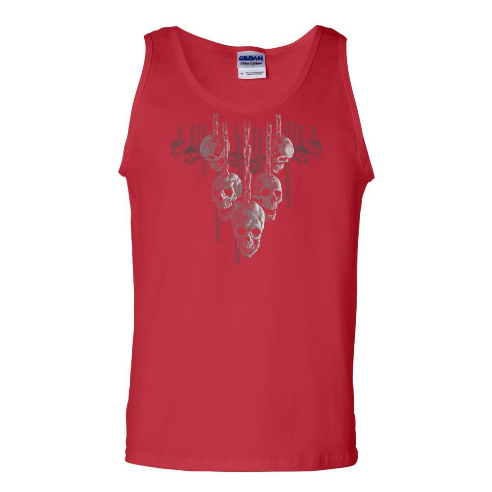 SKULLS HANGING ON CHAINS tank top death creepy scary hell devil sleeveless red