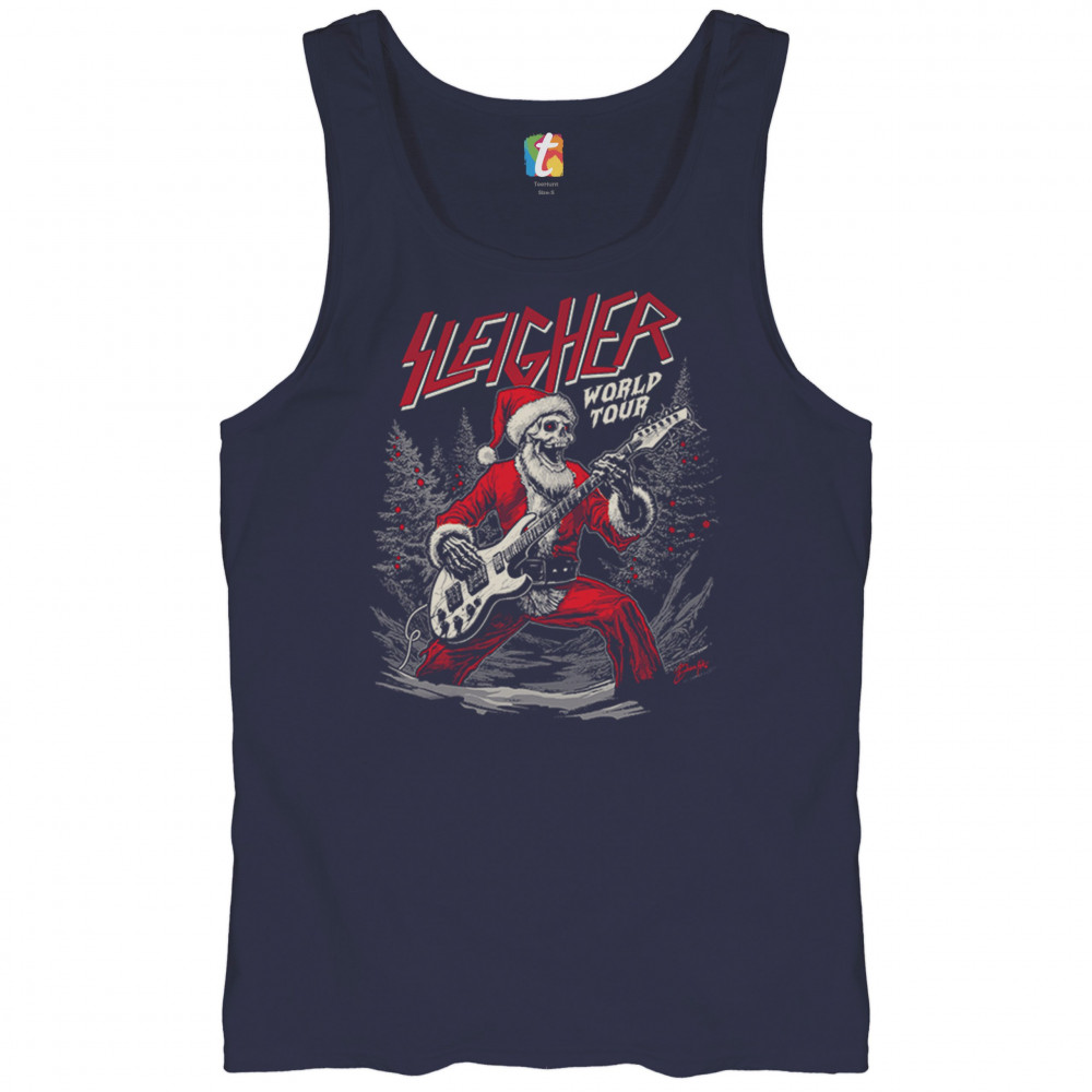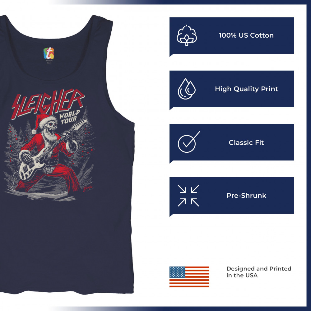 Rock the holidays with the "Sleigher World Tour" Santa skeleton design. Perfect for music lovers, holiday parties, and bold Christmas fashion!