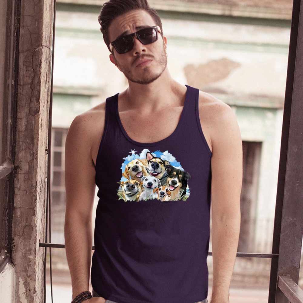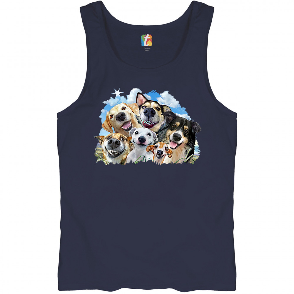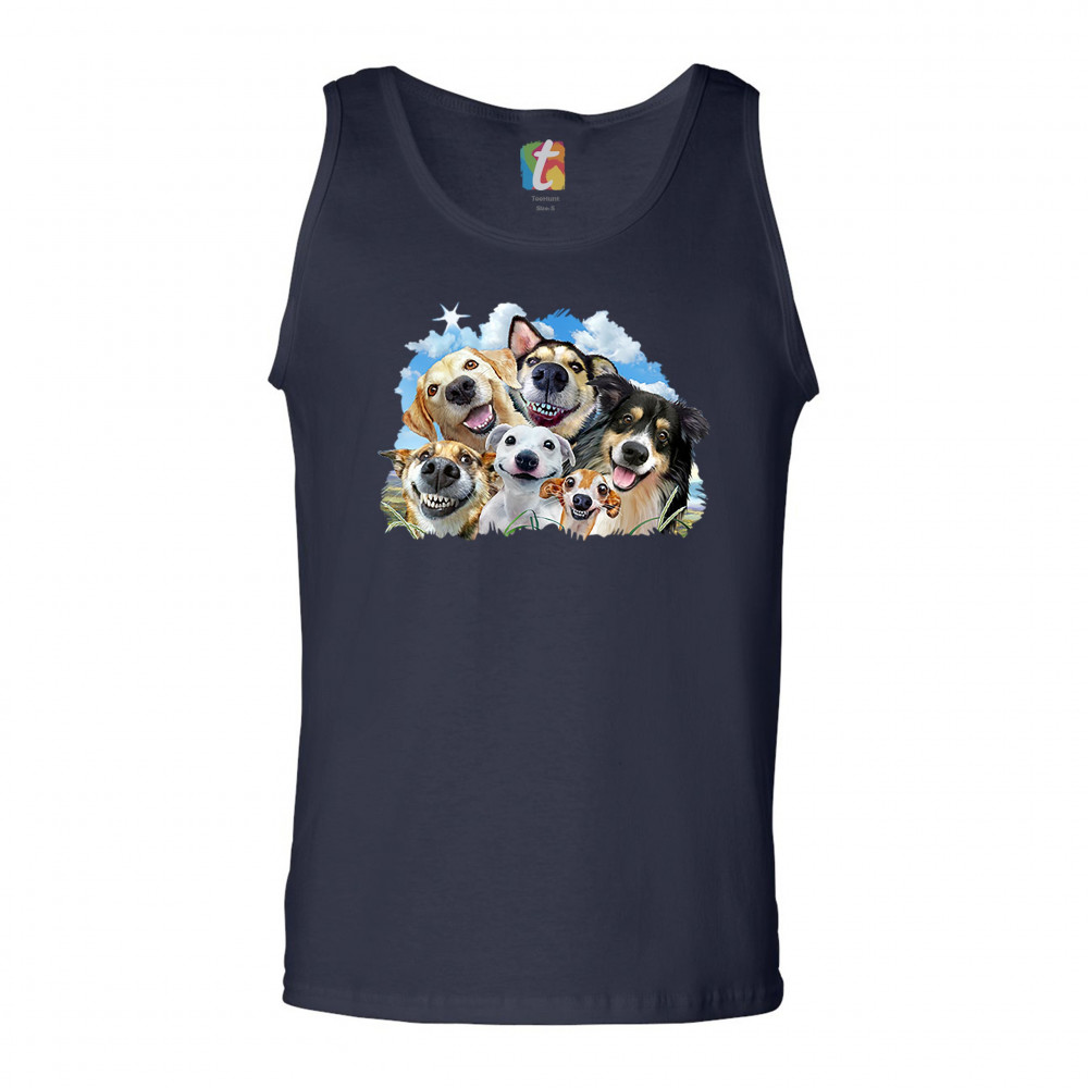 SMILING DOGS' SELFIE tank top funny animal dog lover cute puppies men's top navy blue