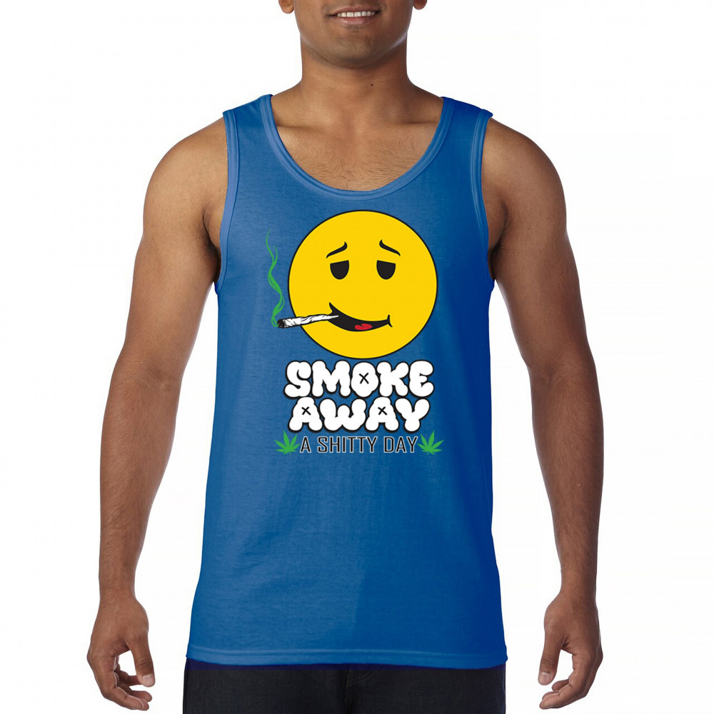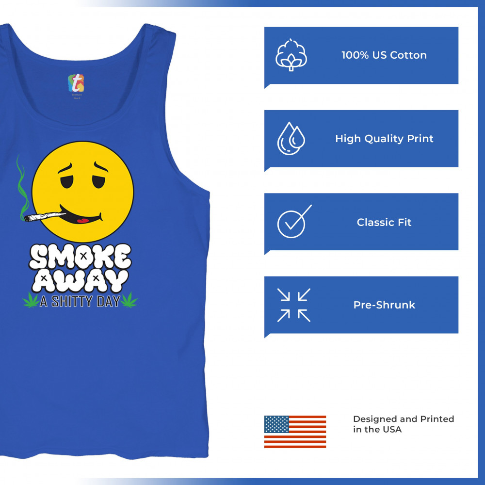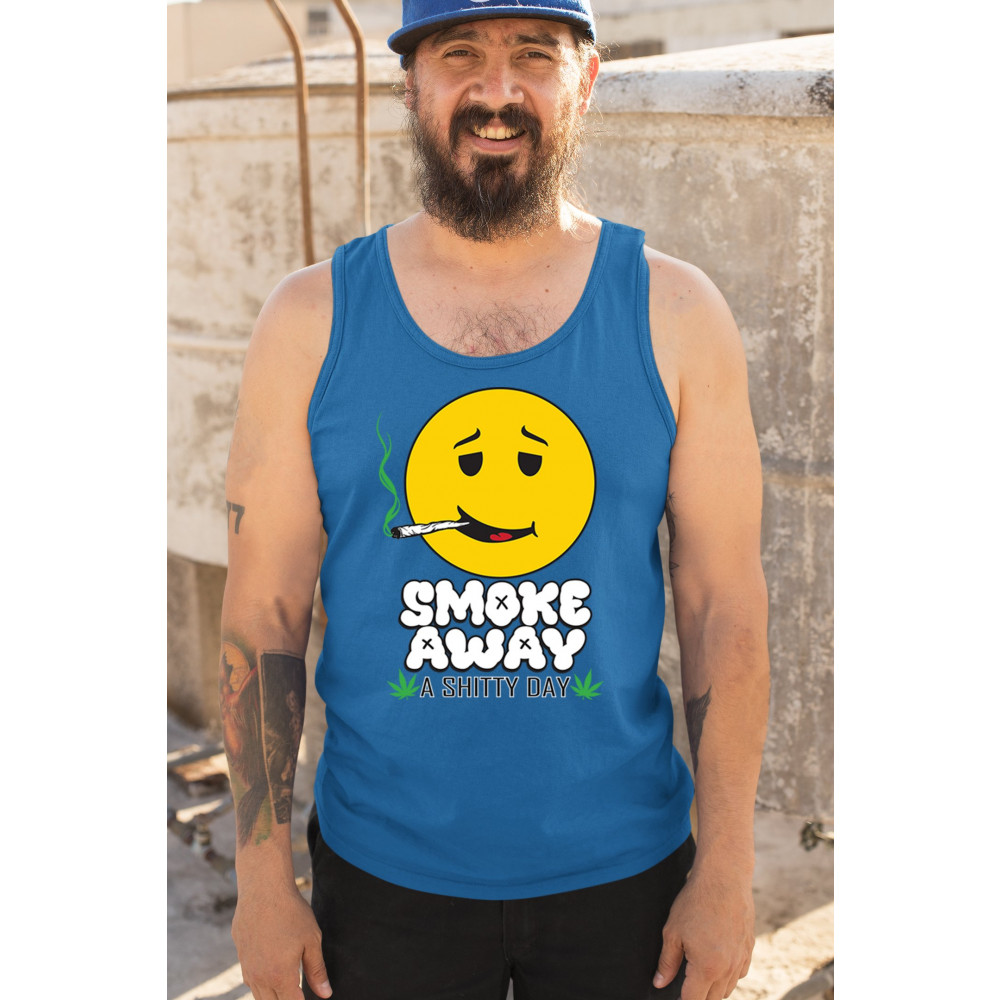 Smiley face with joint and “Smoke Away a Sh*tty Day†message. A perfect cannabis design for stoners, chillers, and sarcastic stress relief.
