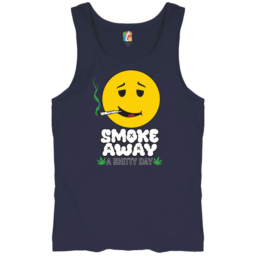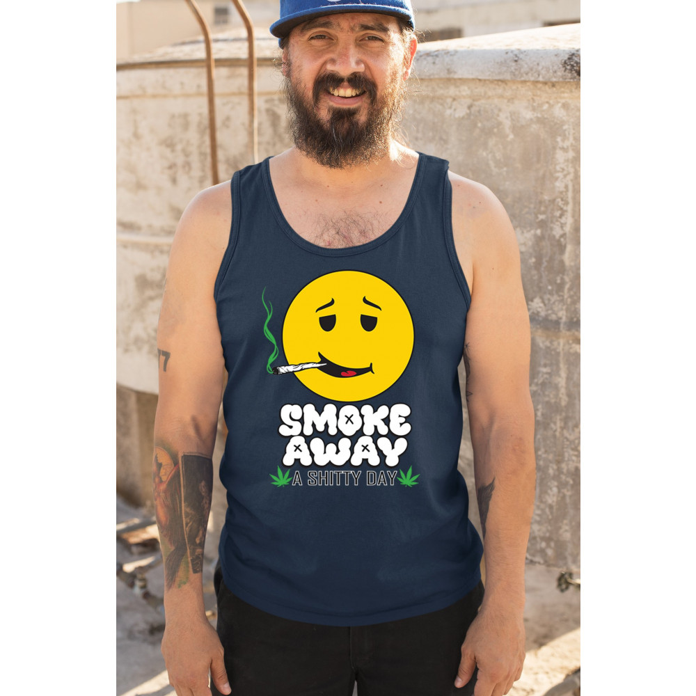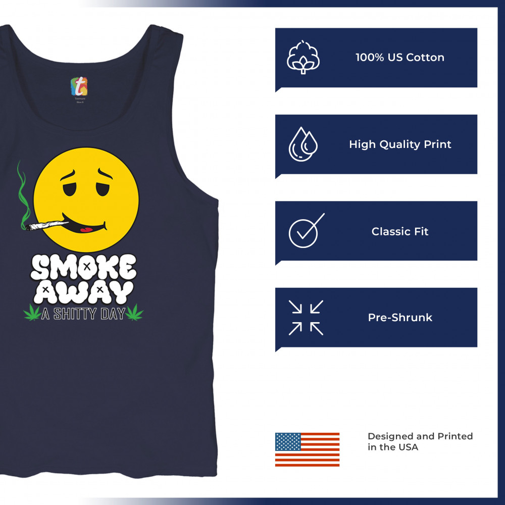 Smiley face with joint and “Smoke Away a Sh*tty Day†message. A perfect cannabis design for stoners, chillers, and sarcastic stress relief.