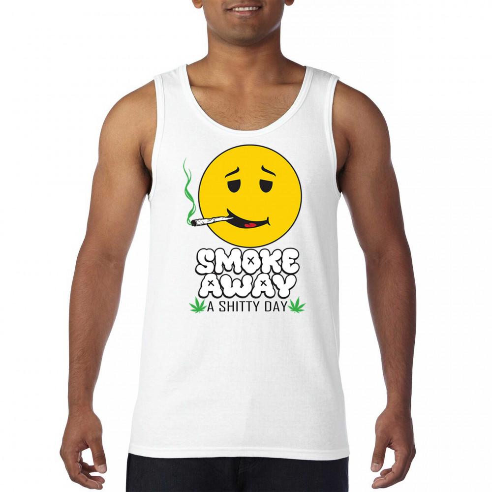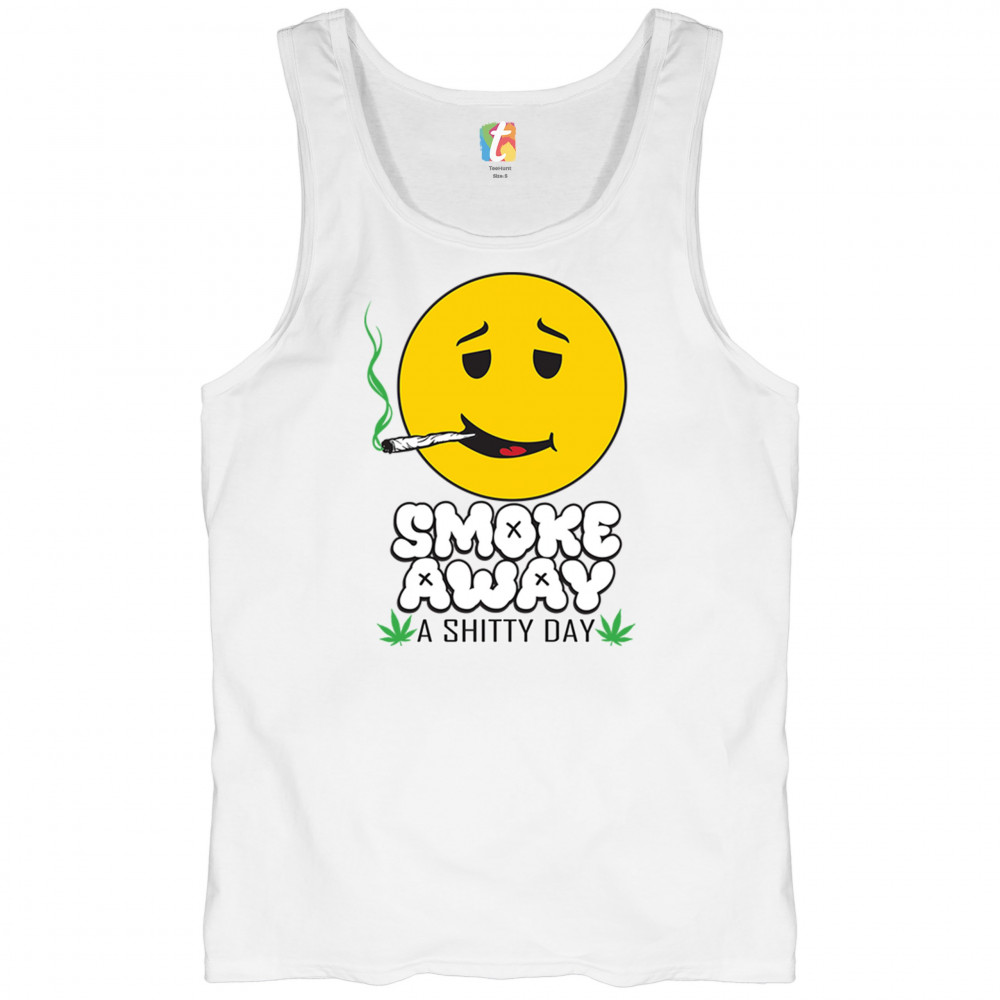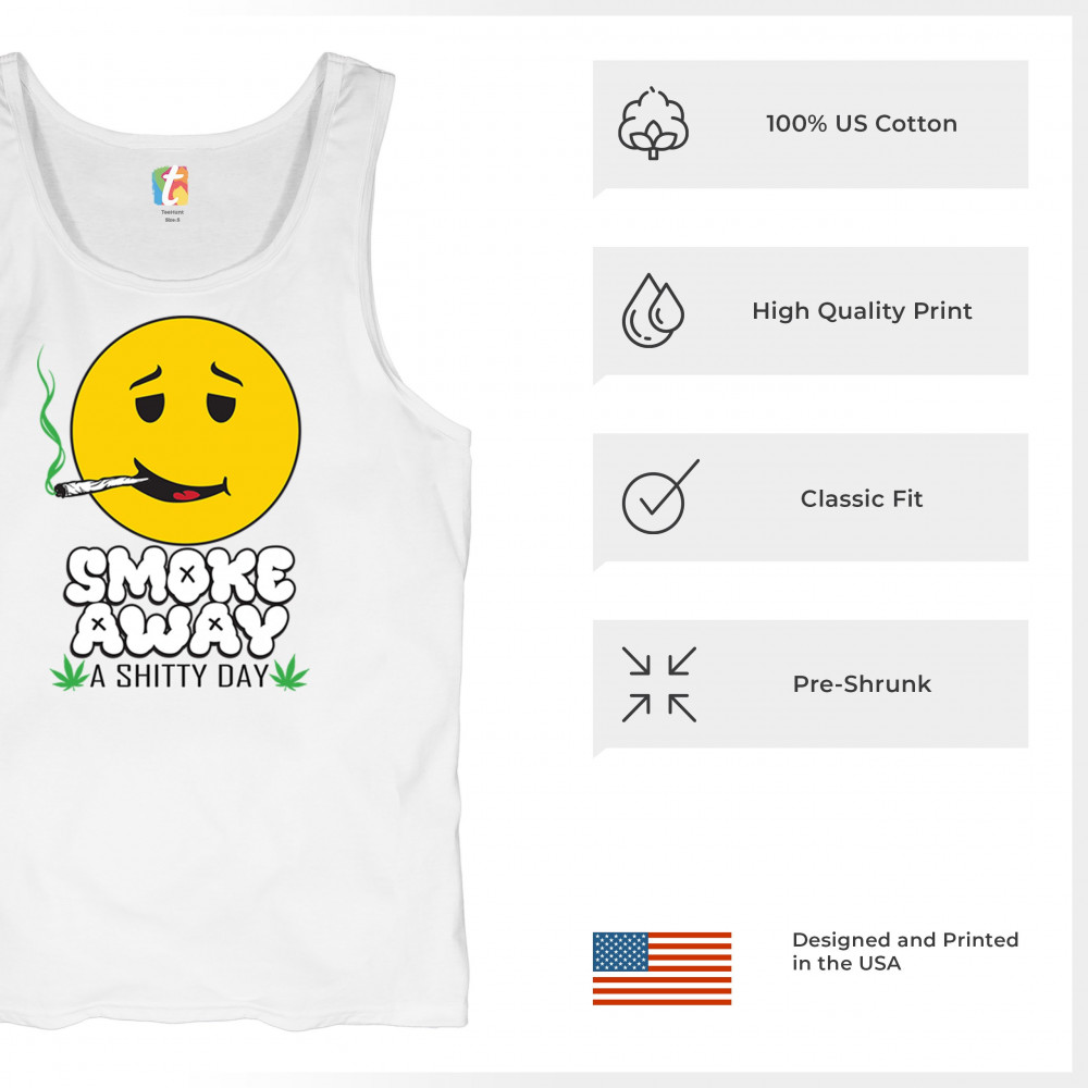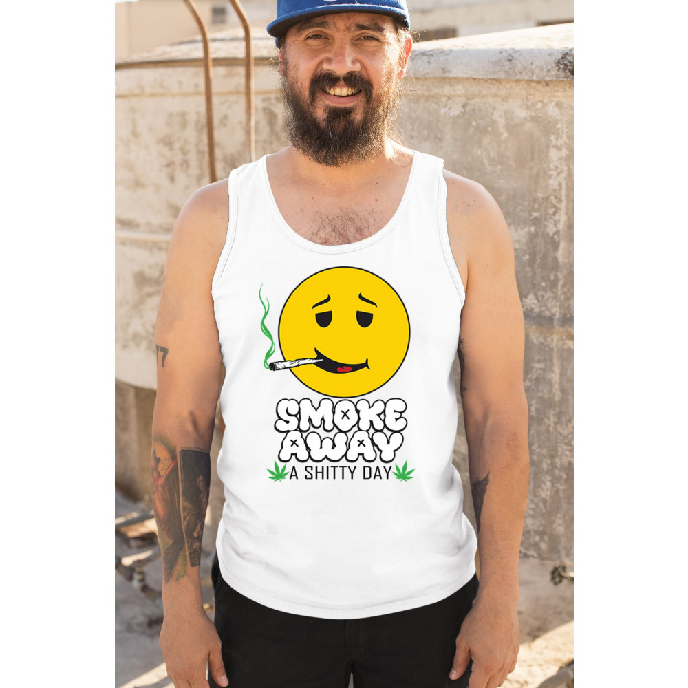 Smiley face with joint and “Smoke Away a Sh*tty Day†message. A perfect cannabis design for stoners, chillers, and sarcastic stress relief.