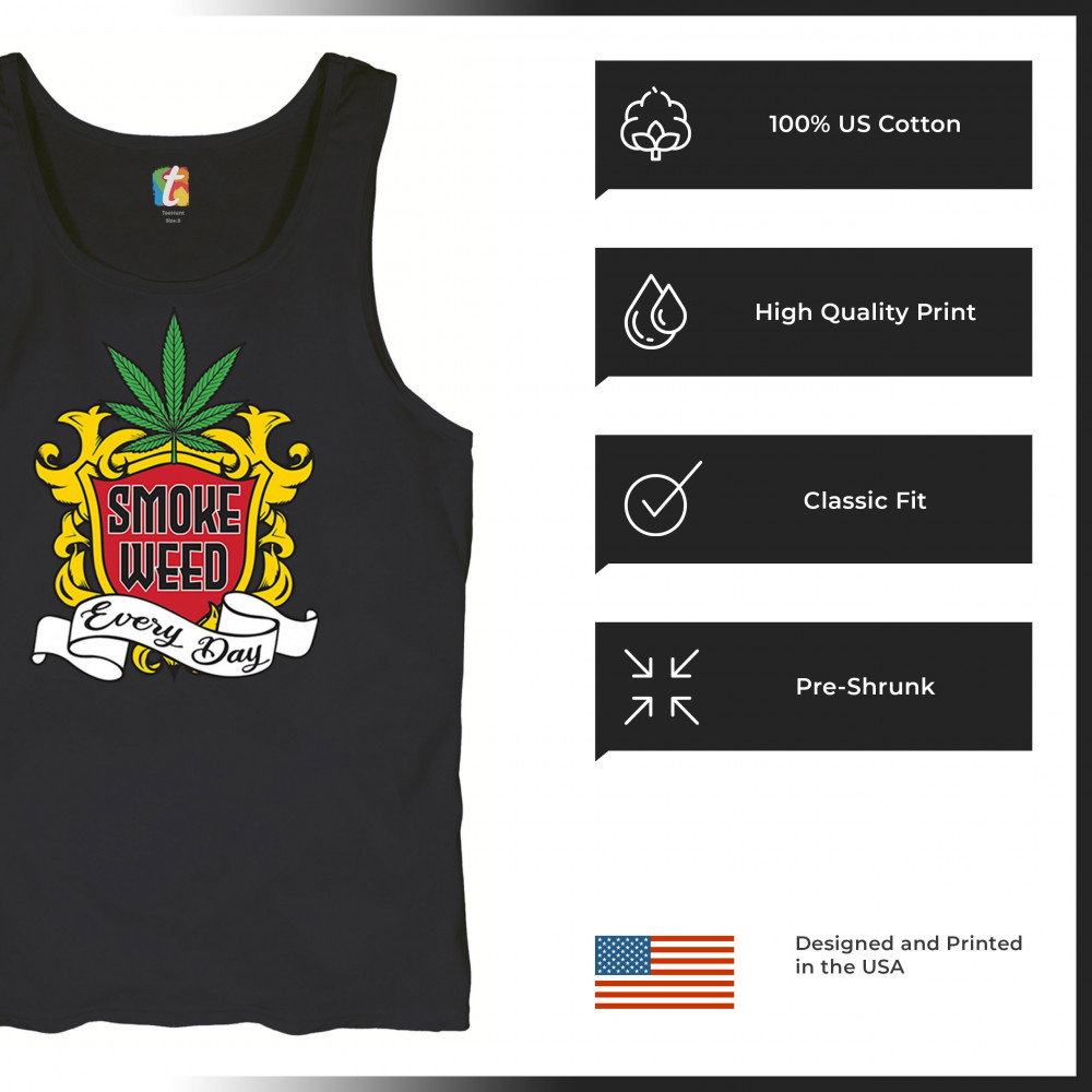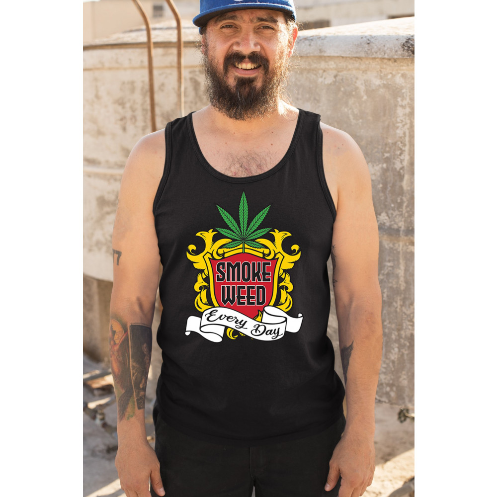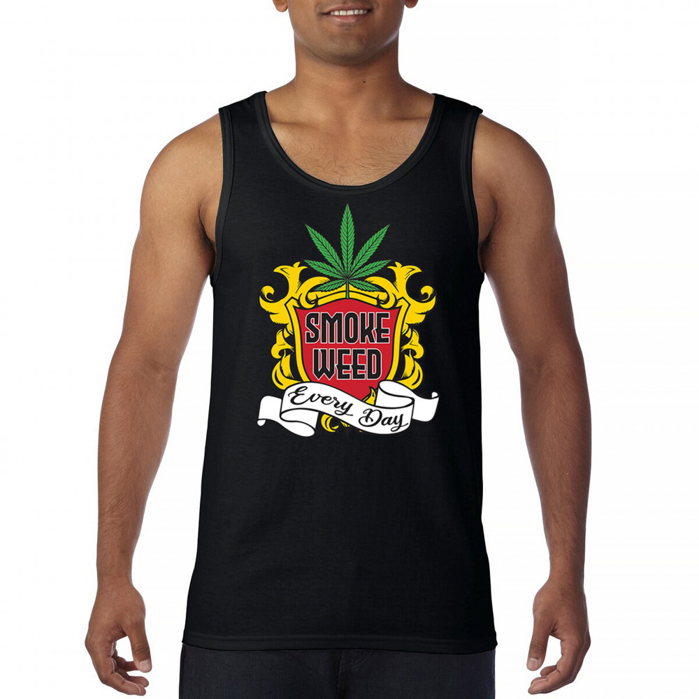 SMOKE WEED EVERY DAY tank top cannabis leaf stoner funny hippie 420 men's top black