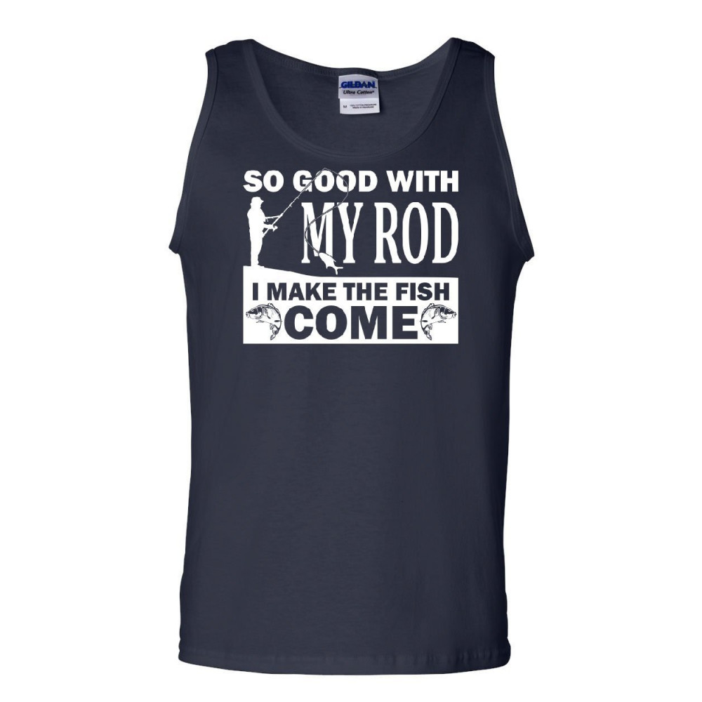 SO GOOD WITH MY ROD I MAKE FISH COME tank top fly fishing hobby sleeveless navy blue