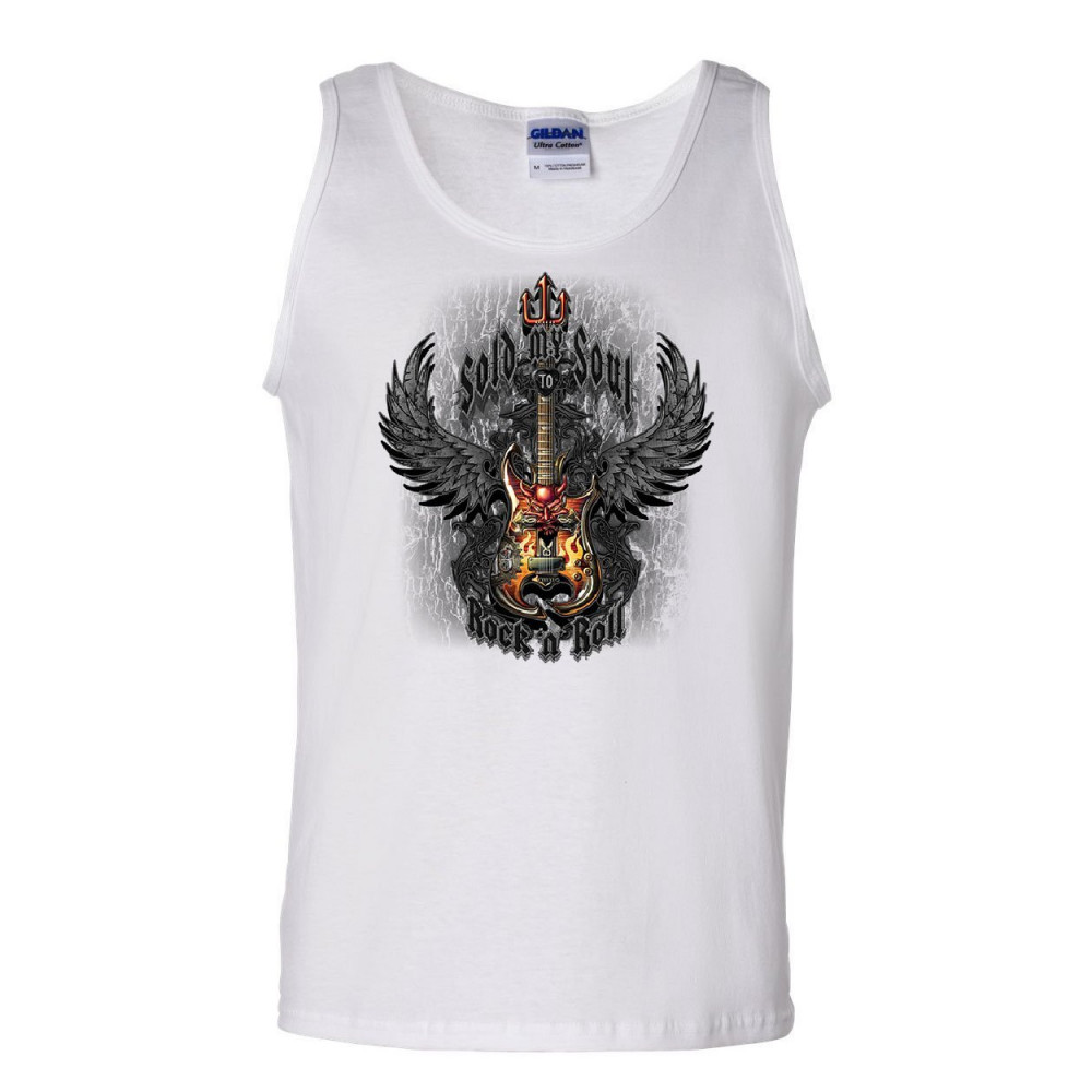 SOLD MY SOUL TO ROCK & ROLL tank top demon guitar wings trident sleeveless white