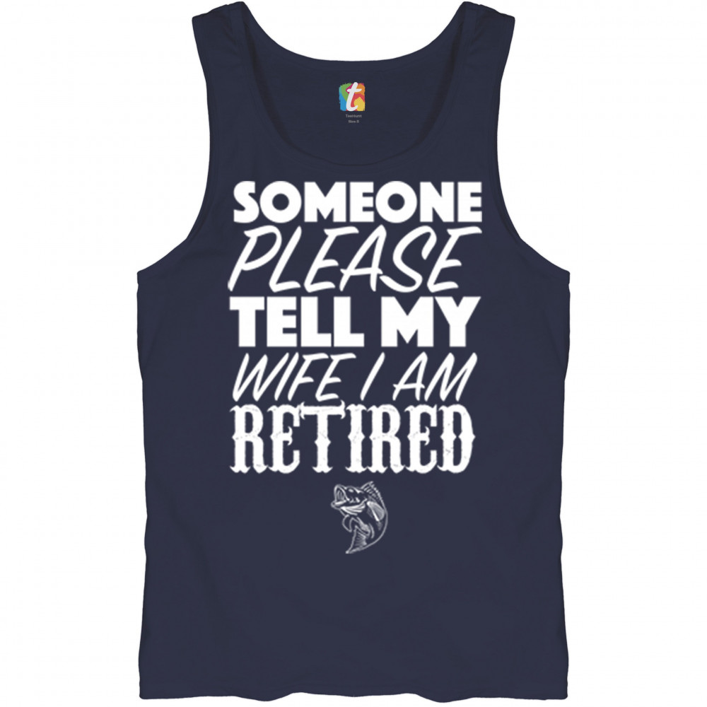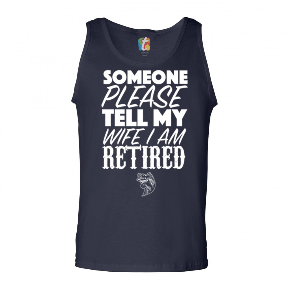 SOMEONE PLEASE TELL MY WIFE I AM RETIRED tank top father's day men's top navy blue