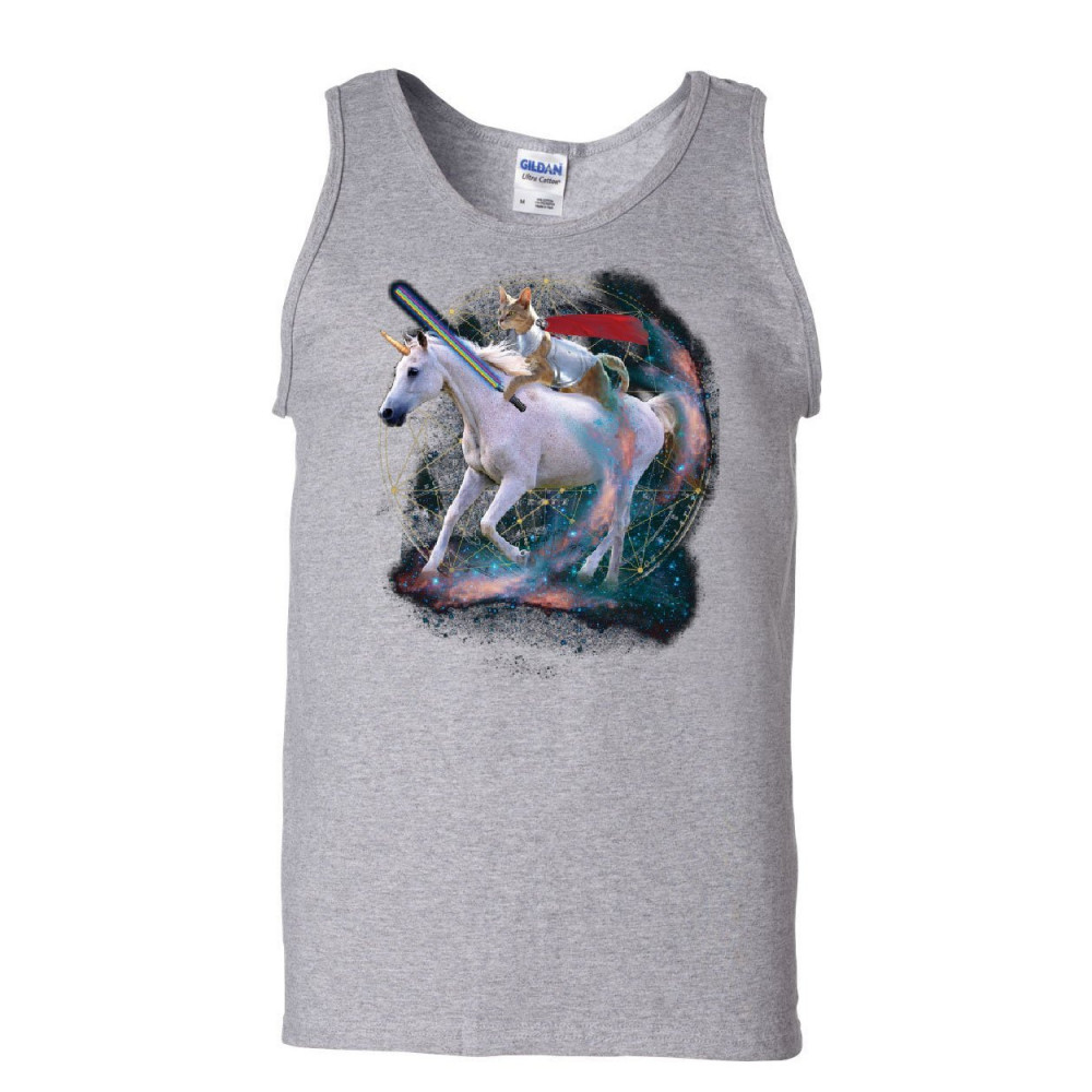 SPACE CAT RIDING A UNICORN with a saber tank top weird universe sleeveless gray