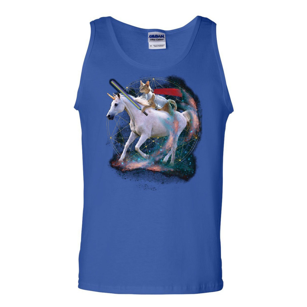 SPACE CAT RIDING A UNICORN with a saber tank top weird universe sleeveless blue