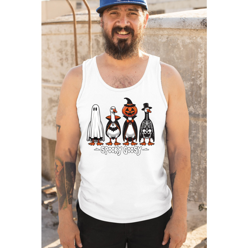 Bring the spooky fun to life with this Spooky Goosy Halloween design featuring geese in witch, skeleton, vampire, and pumpkin costumes. Perfect for haunted house nights, October 31 trick-or-treat events, or monster mash gatherings. A funny and festive choice for goose lovers and Halloween enthusiasts who enjoy creepy costume vibes.