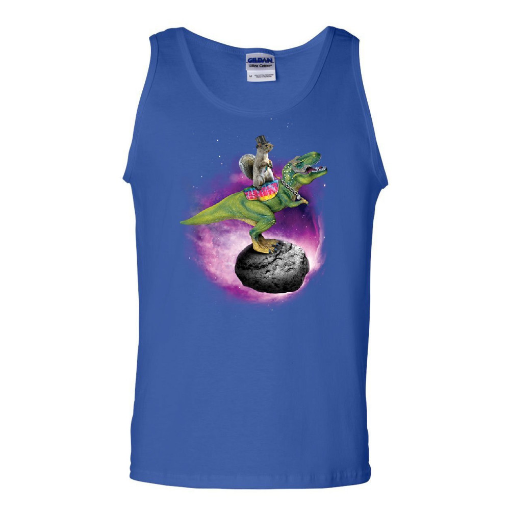 SQUIRREL RIDING T-REX RIDING ASTEROID tank top funny space weird sleeveless blue