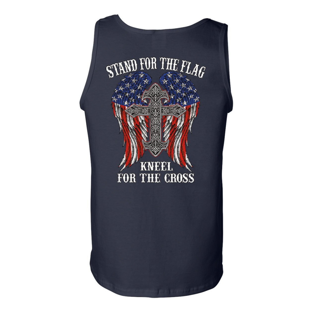 STAND FOR THE FLAG KNEEL FOR THE CROSS tank top patriot political sleeveless navy blue