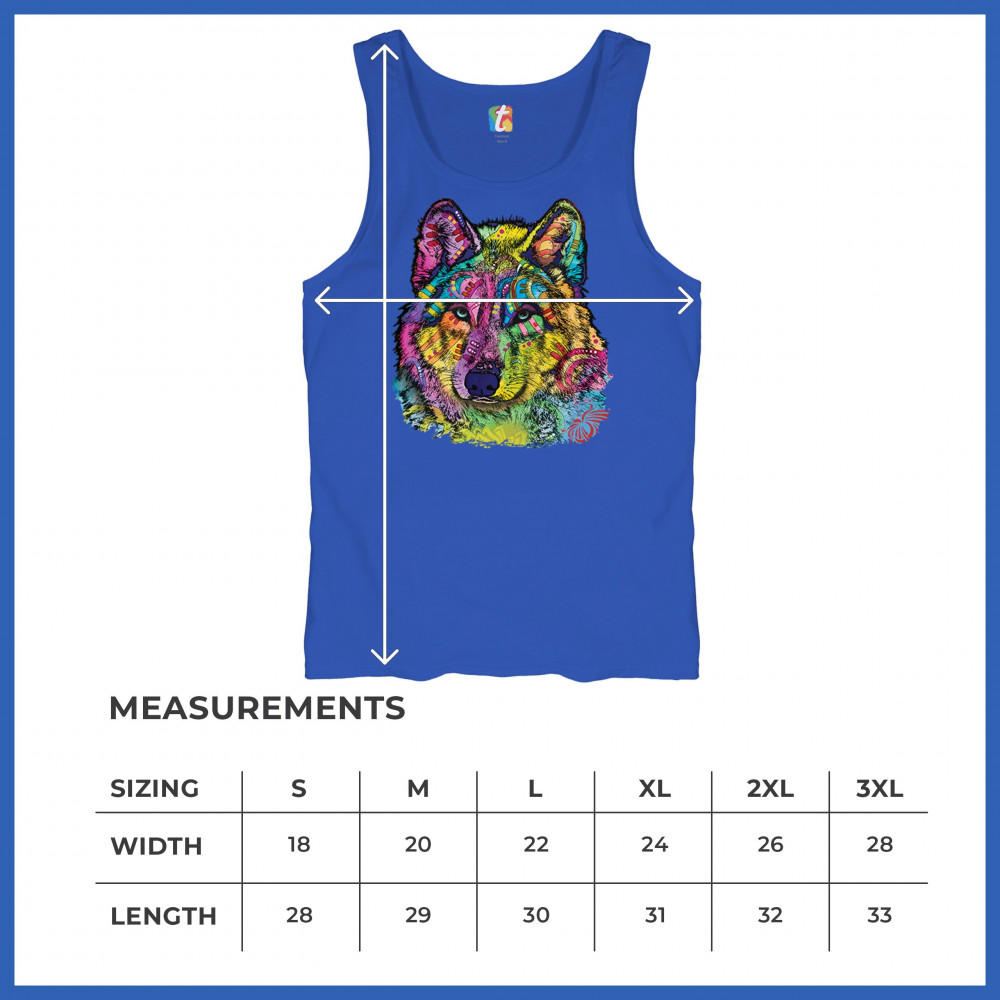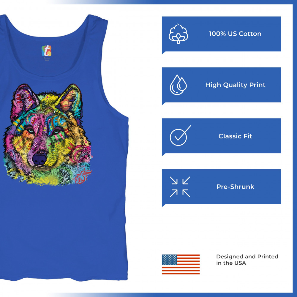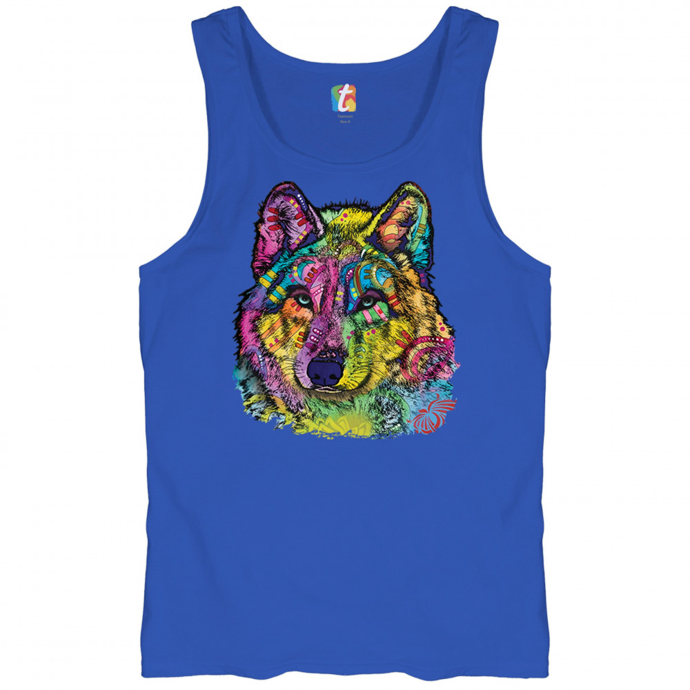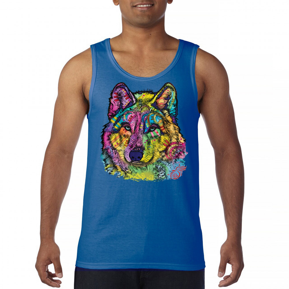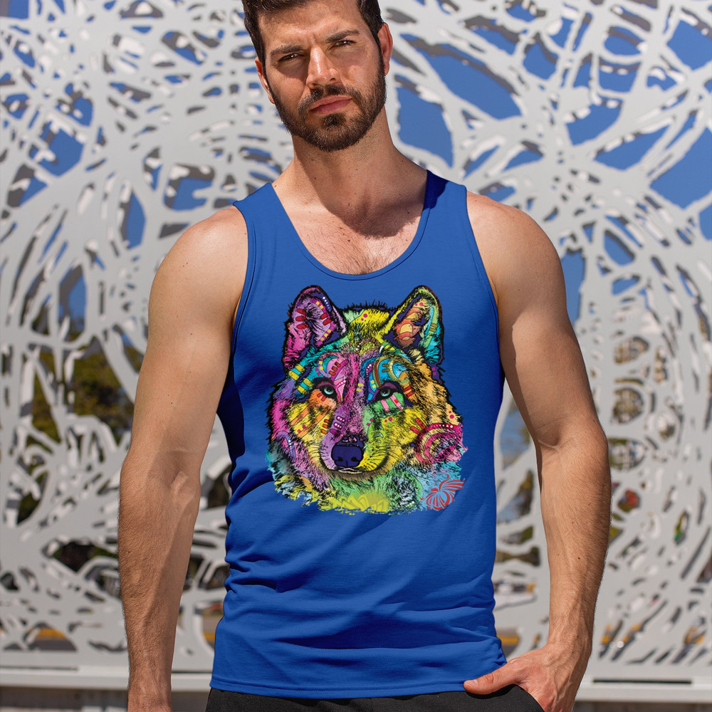 STARE OF THE WOLF tank top dean russo colorful neon animal art men's top royal blue