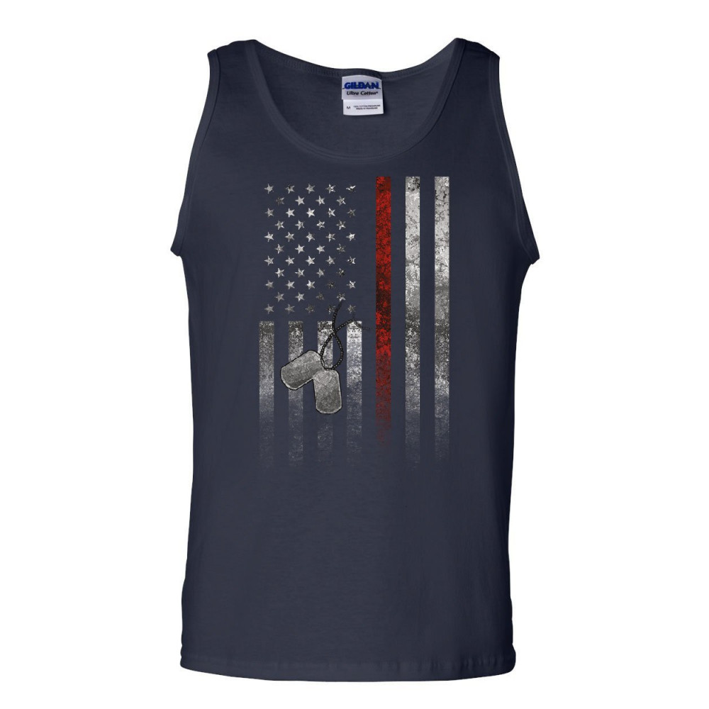 STARS AND STRIPES DOG TAGS tank top military american patriot usa sleeveless navy blue