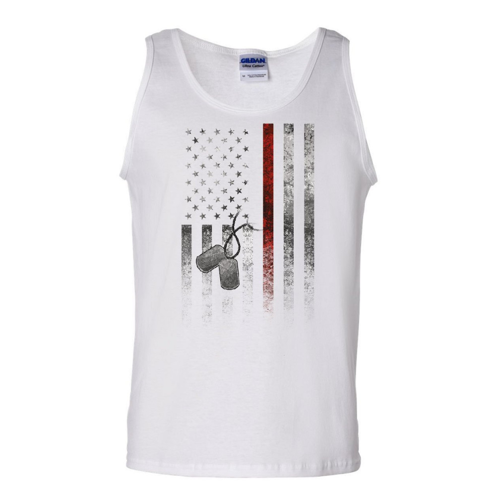 STARS AND STRIPES DOG TAGS tank top military american patriot usa sleeveless white