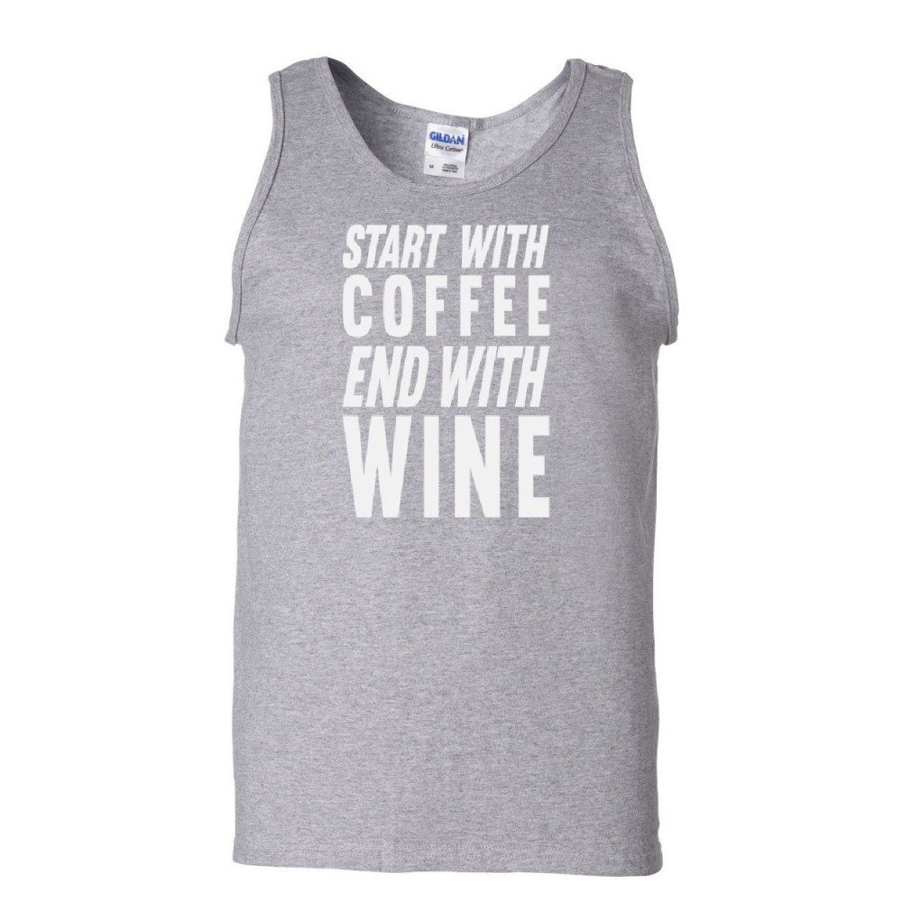 START WITH COFFEE END WITH WINE tank top drinking daily routine sleeveless gray