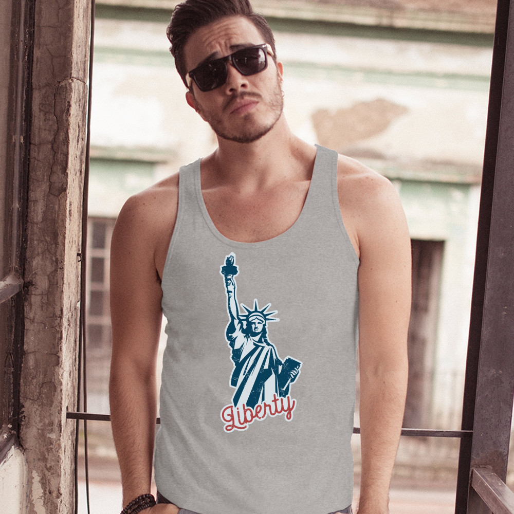 STATUE OF LIBERTY tank top freedom independence 4th of july nyc usa men's top gray