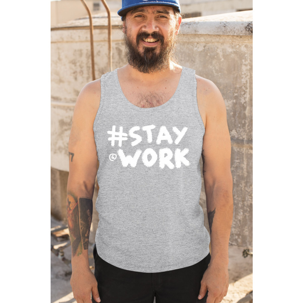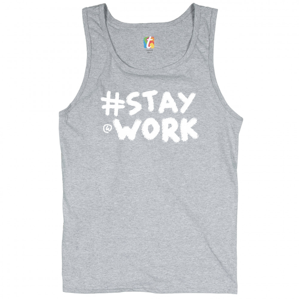 STAY AT WORK FUNNY ELON MUSK TWEET PARODY tank top liberal sarcasm men's top gray