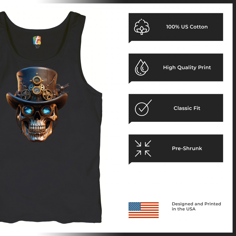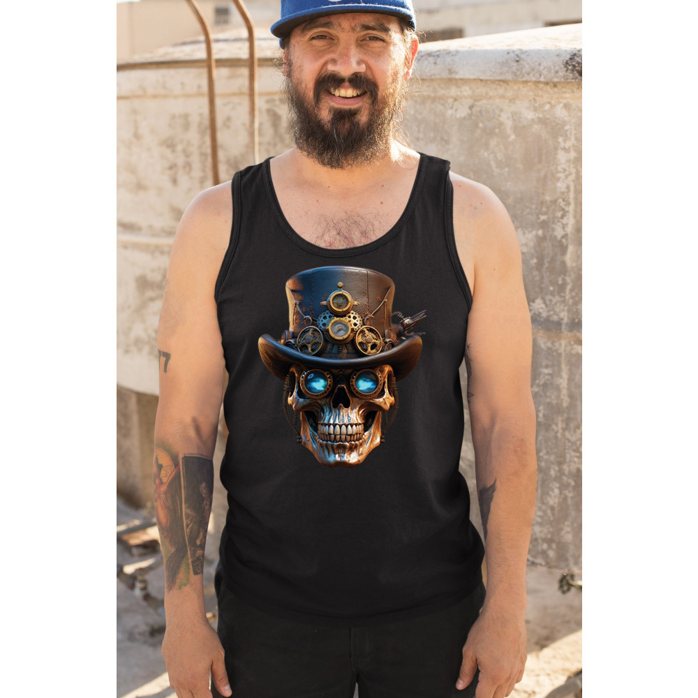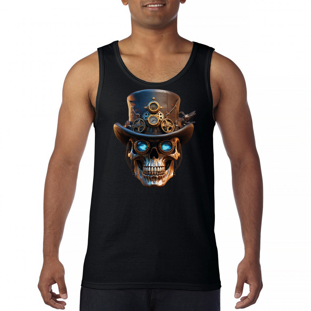 STEAMPUNK SKULL men's tank top victorian gothic retro futurism halloween black