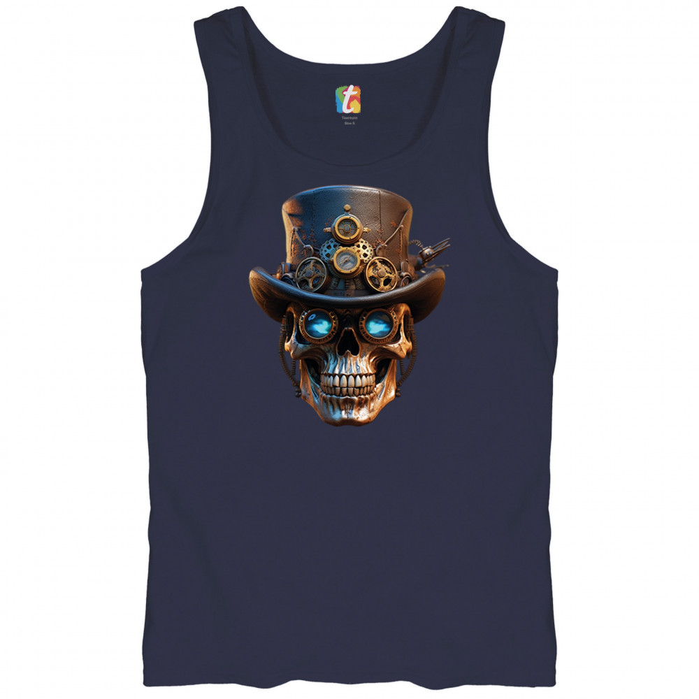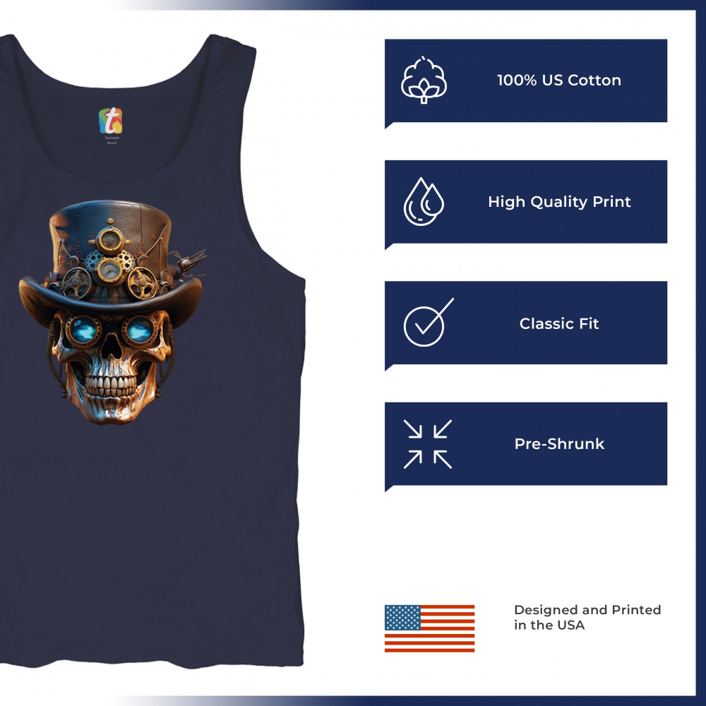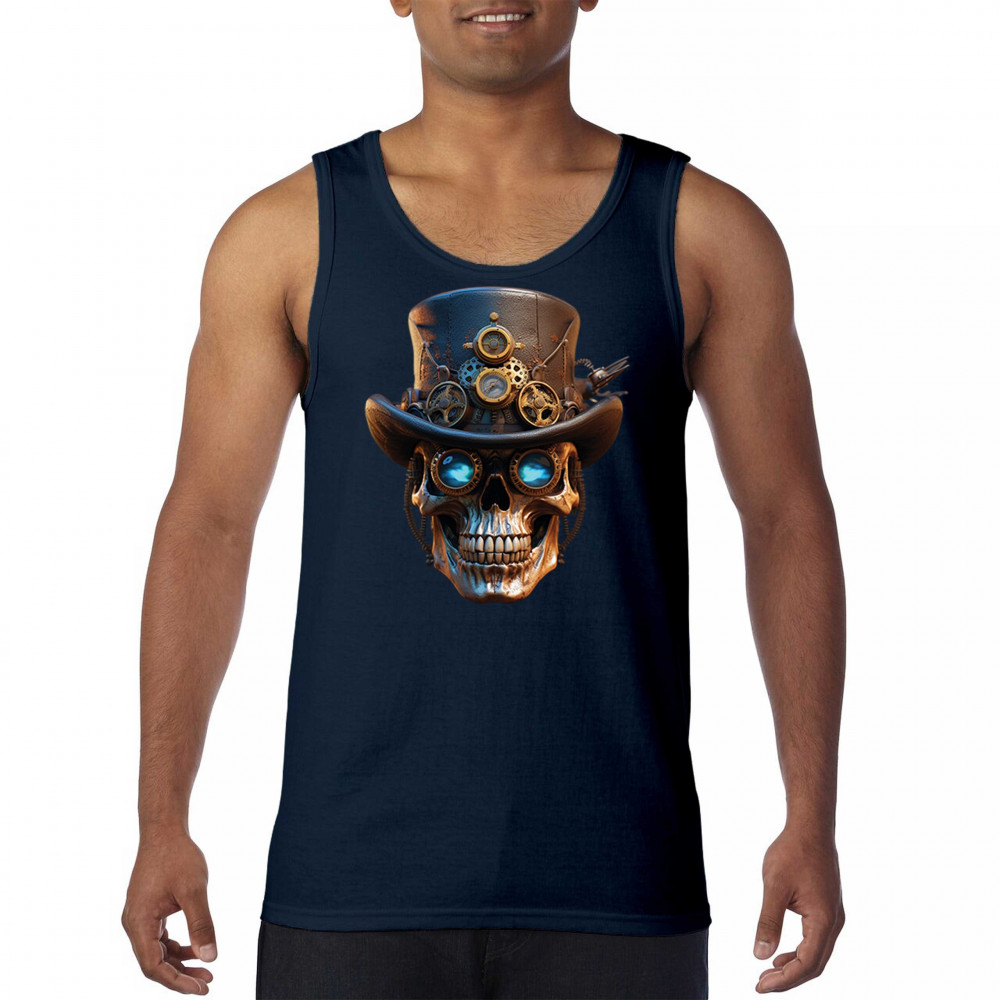 Steampunk skull shirt with gothic retro-futurism. Perfect for Halloween, cosplay, biker rallies, and edgy rebel fashion lovers.