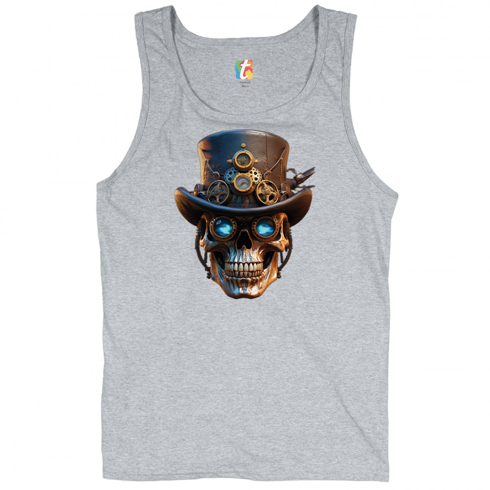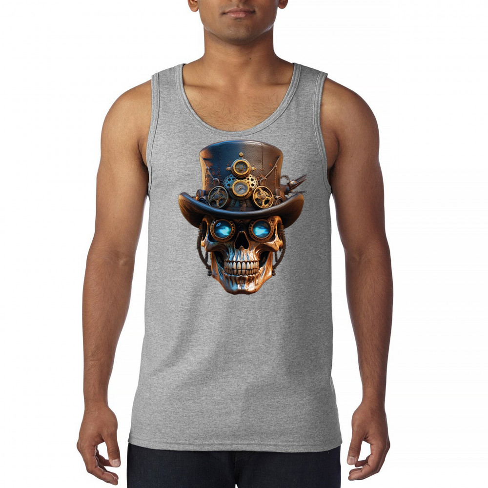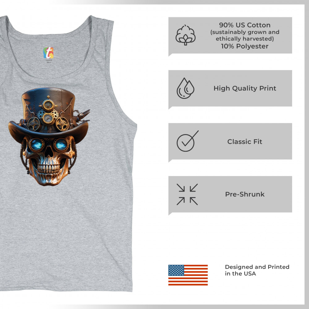 Steampunk skull shirt with gothic retro-futurism. Perfect for Halloween, cosplay, biker rallies, and edgy rebel fashion lovers.