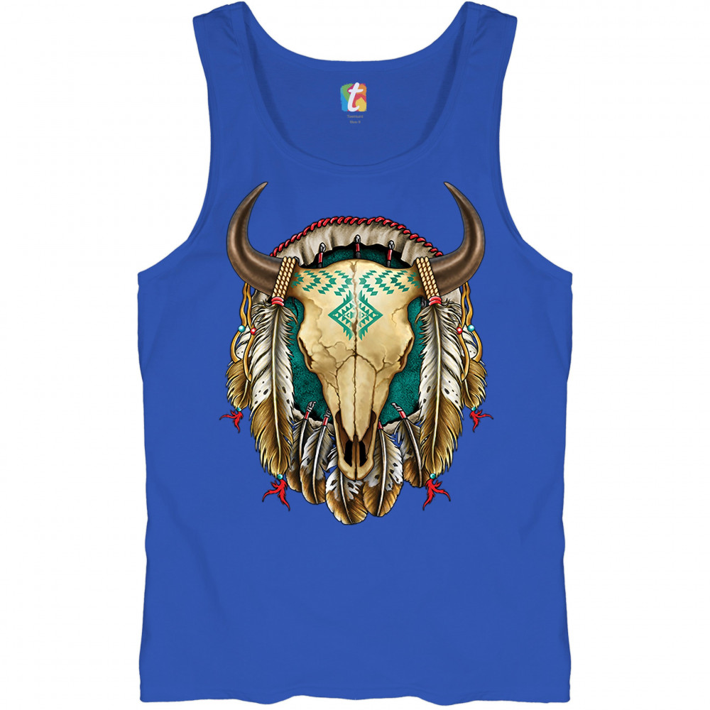 STEER SKULL DREAMCATCHER tank top native american indigenous culture men's top royal blue