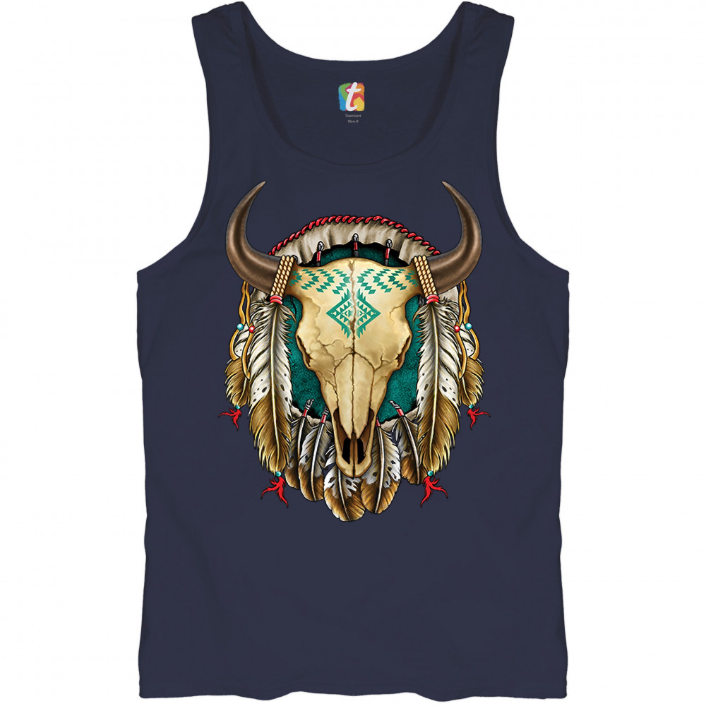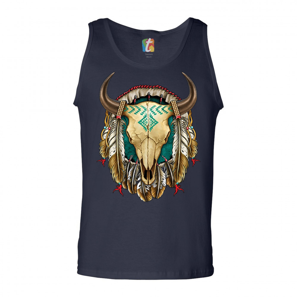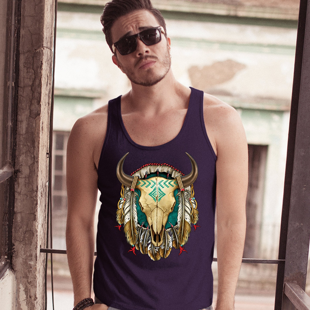 STEER SKULL DREAMCATCHER tank top native american indigenous culture men's top navy blue
