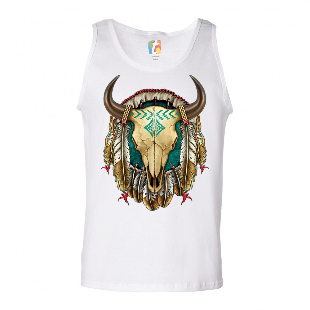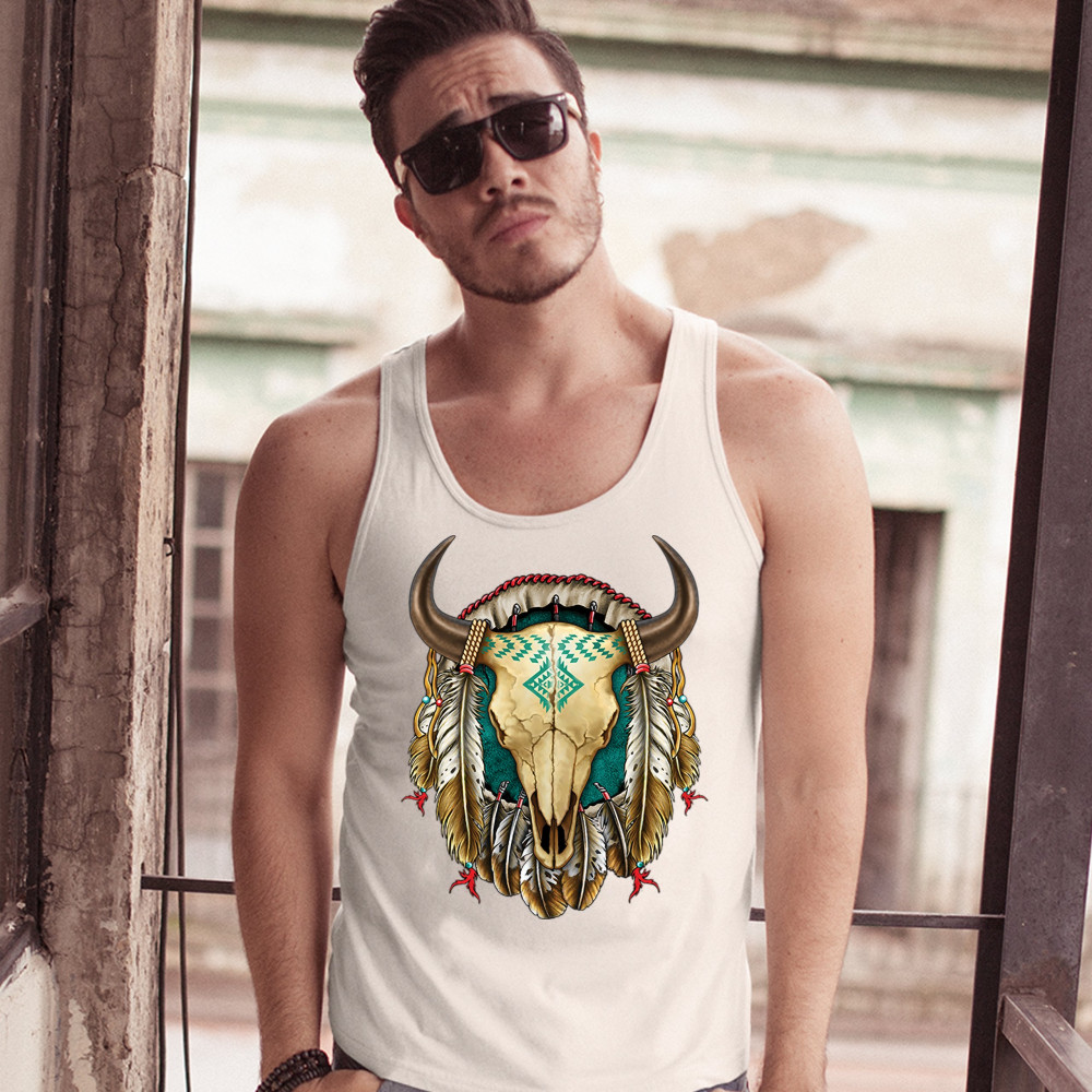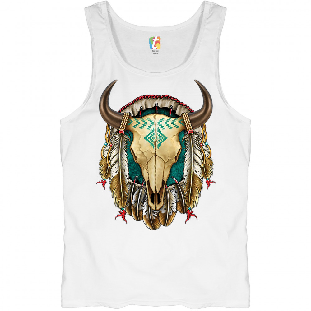 STEER SKULL DREAMCATCHER tank top native american indigenous culture men's top white
