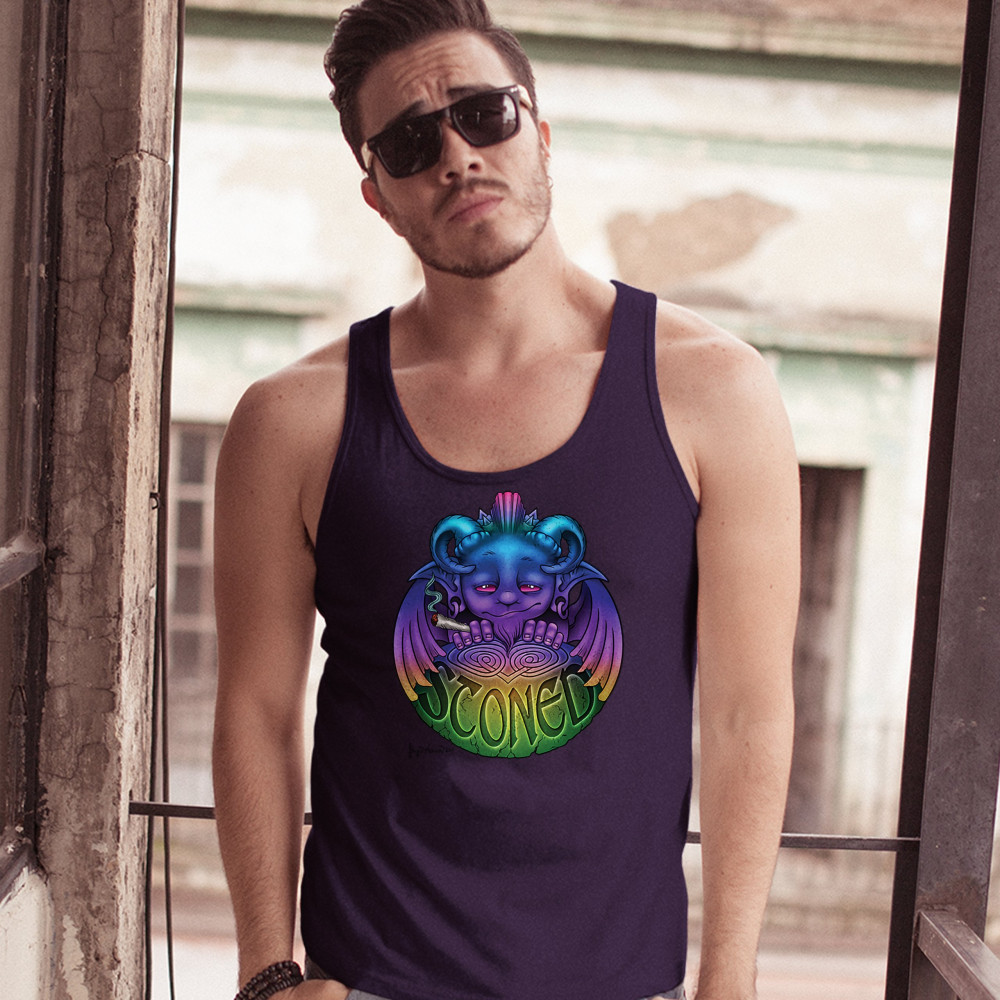 STONED GARGOYLE tank top pot marijuana joint funny weird 420 men's top navy blue