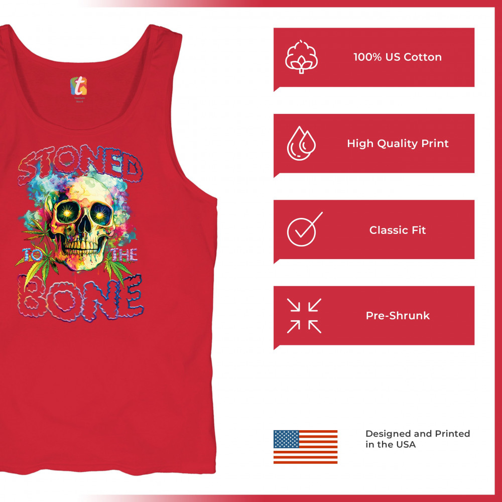 Turn heads with this bold, psychedelic “Stoned to the Bone†skull tee—loaded with neon colors, weed leaves, and a trippy aesthetic. It’s built for cannabis lovers, hippies, festival-goers, and party people living the high life. The ultimate head shop style and 420 fashion statement.
