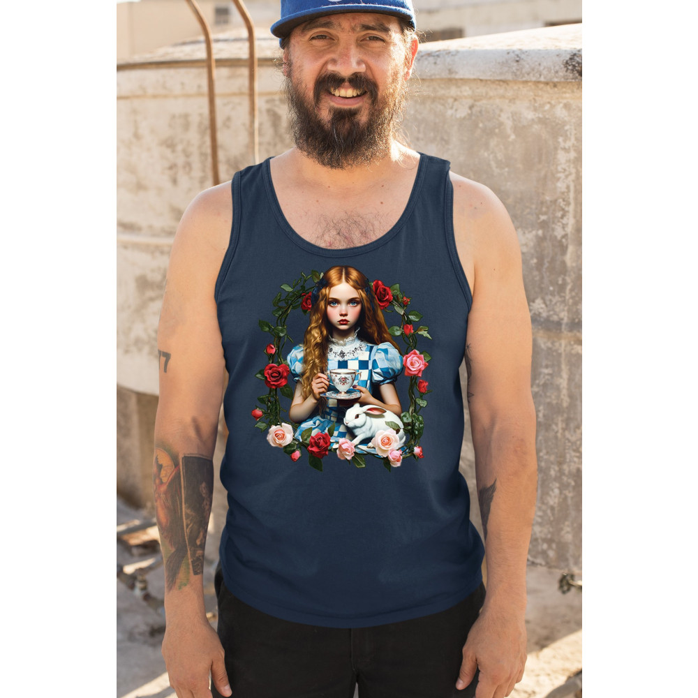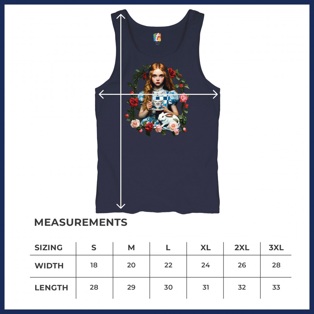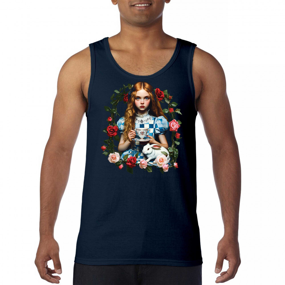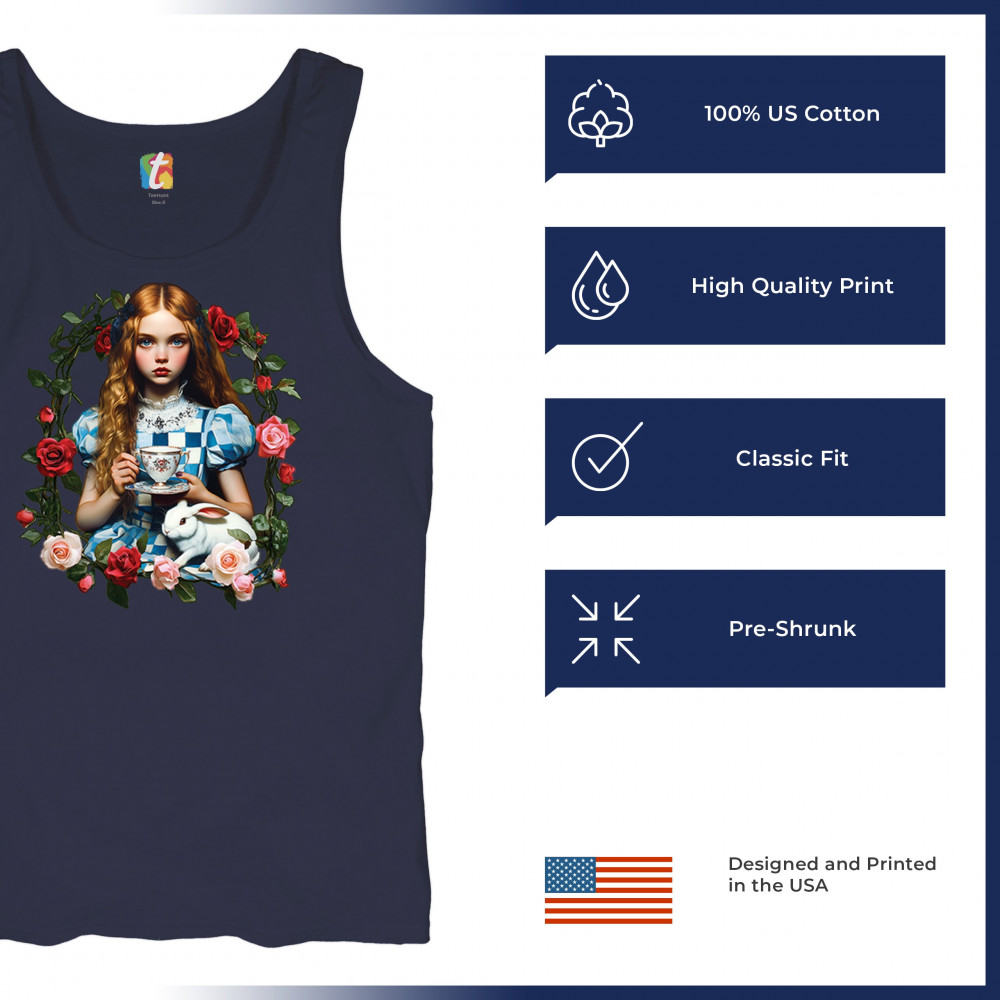 Step into a storybook dream with this Wonderland-inspired design featuring a young girl at a tea party with her white rabbit companion. Framed by roses, it evokes vintage charm, fantasy, and magical nostalgia. Ideal for bookworms, collectors, and lovers of fairytales, it blends whimsical elegance with timeless childhood wonder.