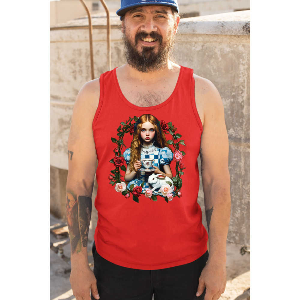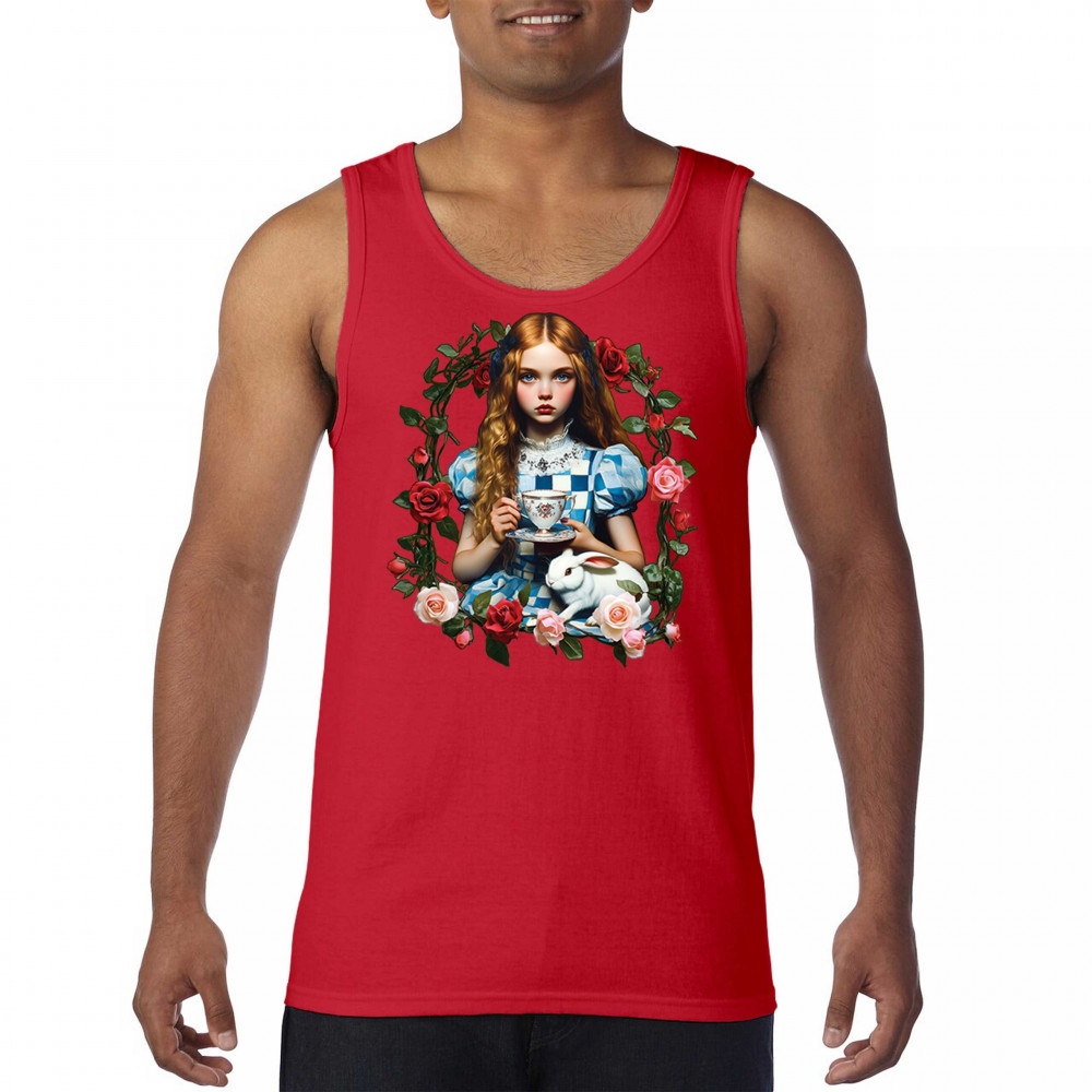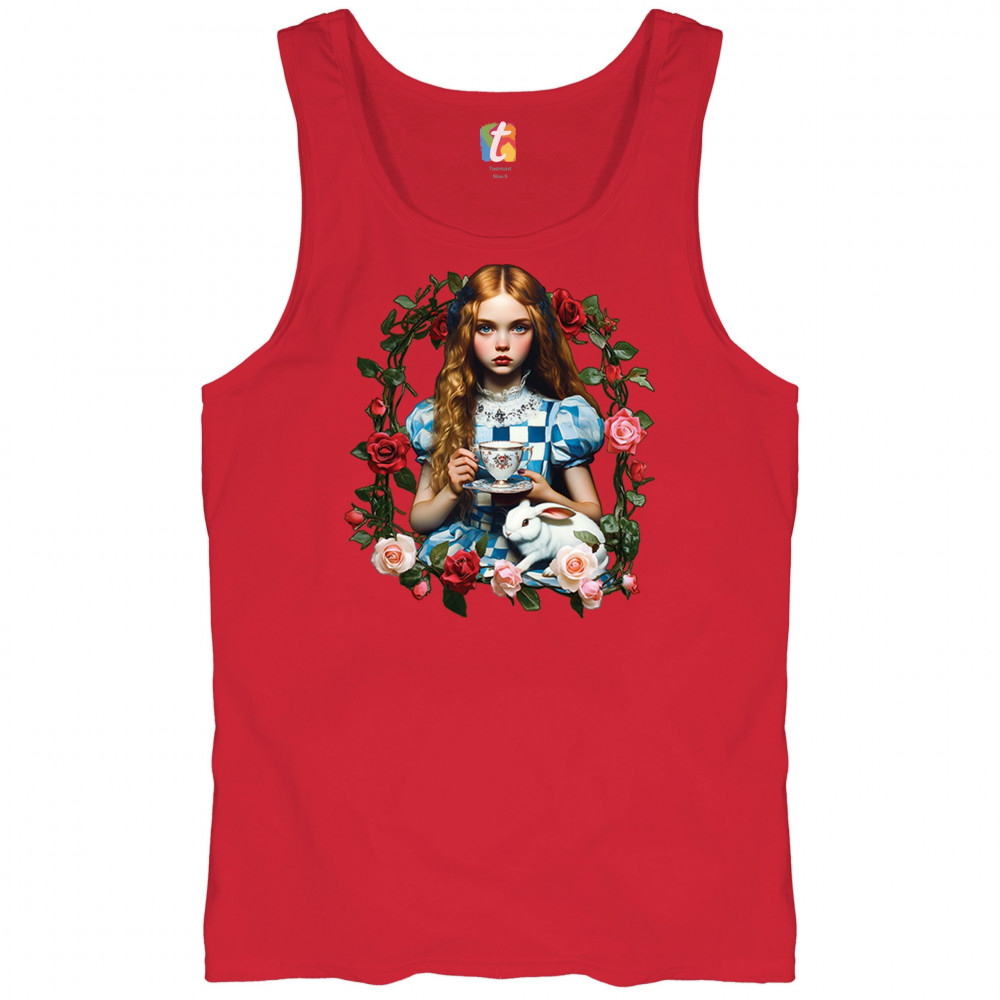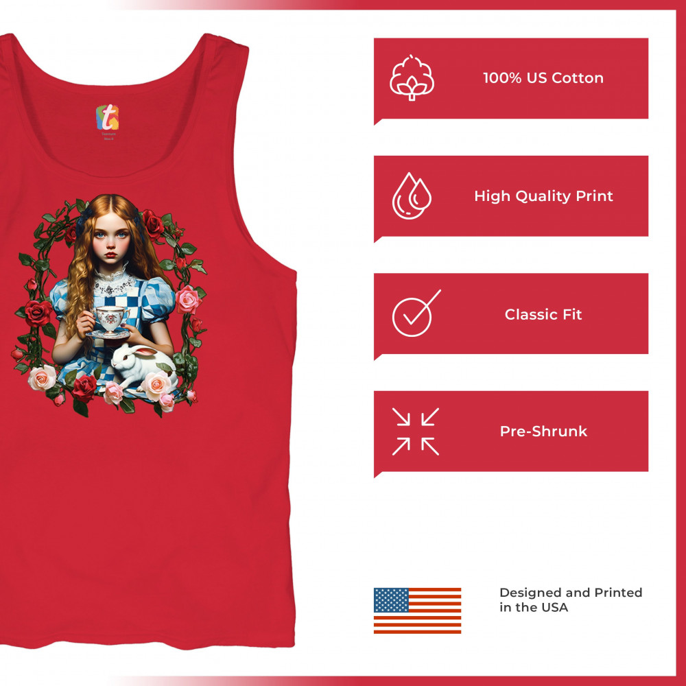Step into a storybook dream with this Wonderland-inspired design featuring a young girl at a tea party with her white rabbit companion. Framed by roses, it evokes vintage charm, fantasy, and magical nostalgia. Ideal for bookworms, collectors, and lovers of fairytales, it blends whimsical elegance with timeless childhood wonder.