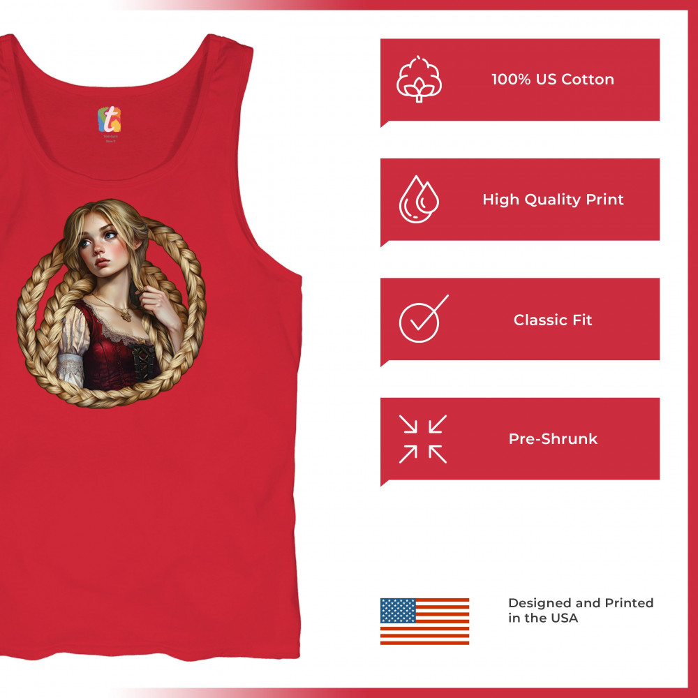 A dreamy design featuring a blonde girl with long braided hair encircling her like a frame. With vintage dress details and a wistful look, this artwork channels the essence of fairytales, romantic legends, and gentle feminine power. Ideal for fantasy lovers, folklore fans, and collectors of magical storybook themes.