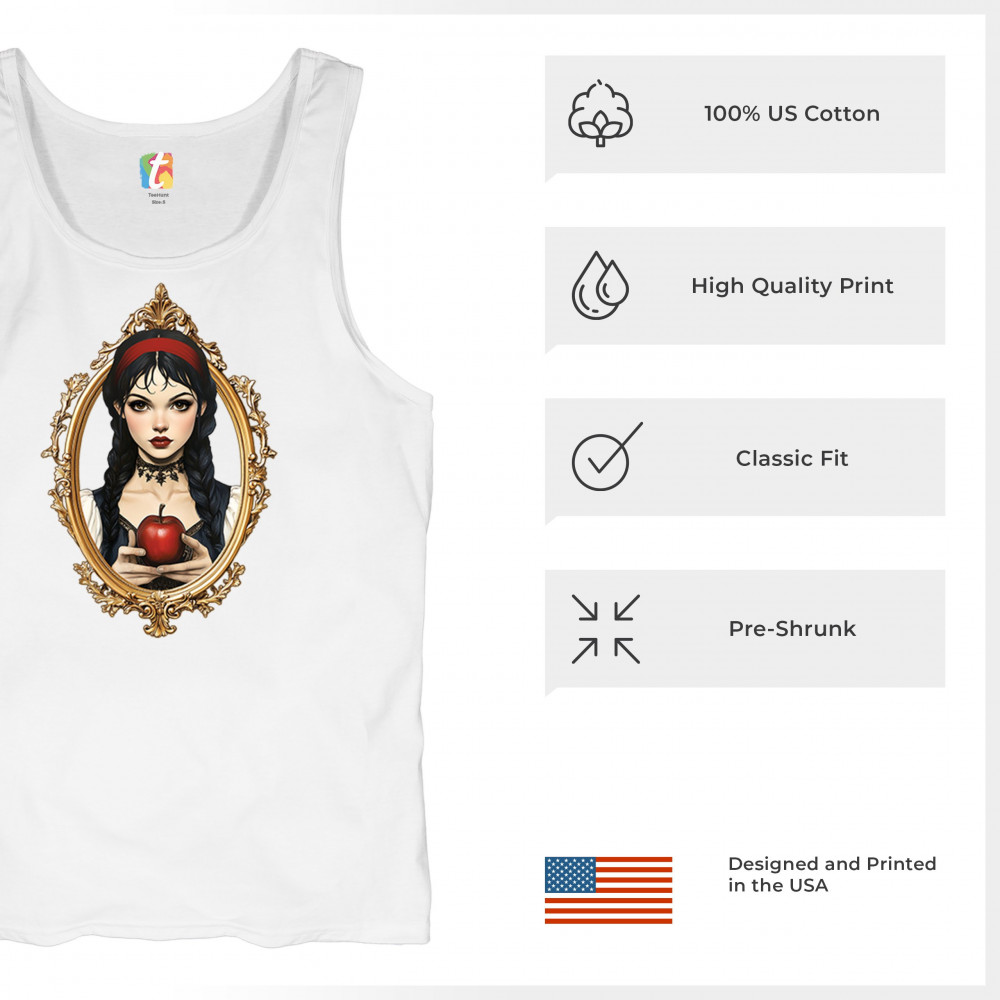 This enchanting design brings to life a gothic-inspired girl holding a red apple, encased in a regal vintage mirror frame. With elements pulled from Snow White, fairytales, and fantasy symbolism, it blends innocence and temptation with dark romanticism. Perfect for dreamers, collectors, and lovers of magical narratives and visual elegance.