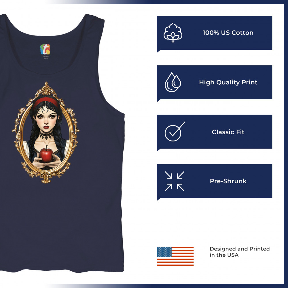 This enchanting design brings to life a gothic-inspired girl holding a red apple, encased in a regal vintage mirror frame. With elements pulled from Snow White, fairytales, and fantasy symbolism, it blends innocence and temptation with dark romanticism. Perfect for dreamers, collectors, and lovers of magical narratives and visual elegance.