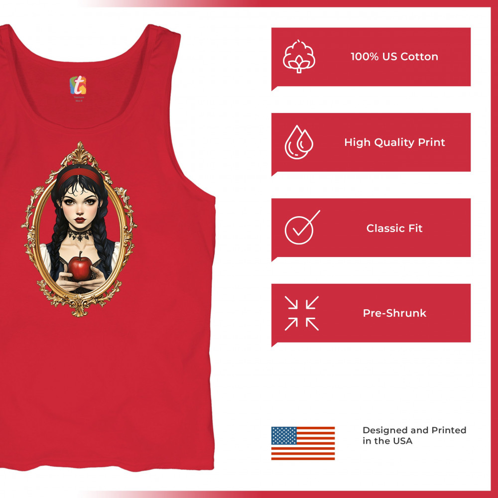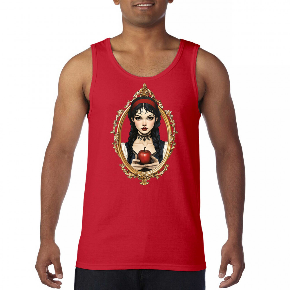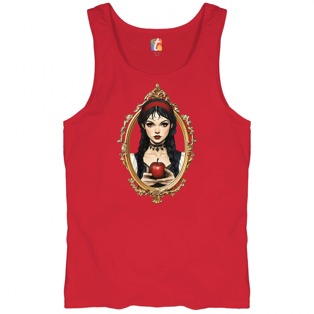 Dark fairytale design with red apple, gold frame, and Snow White vibes. A dreamy blend of fantasy, gothic style, and magical storytelling.