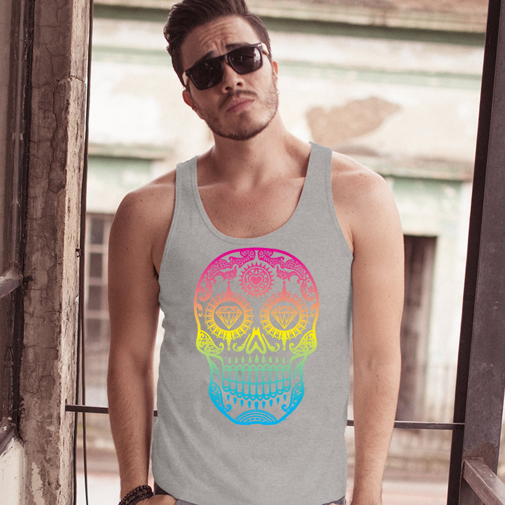 SUGAR SKULL CALAVERA DIAMOND EYES tank top day of the dead men's top gray