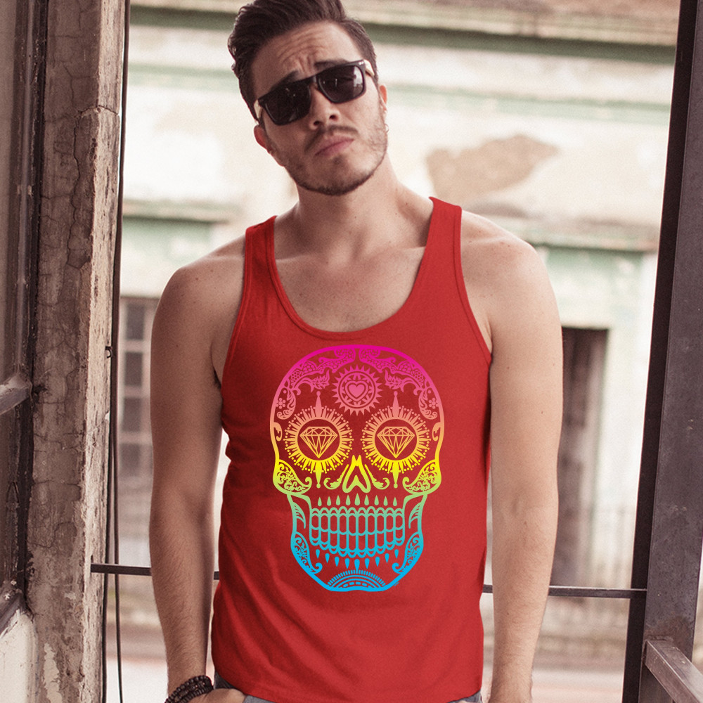 SUGAR SKULL CALAVERA DIAMOND EYES tank top day of the dead men's top red