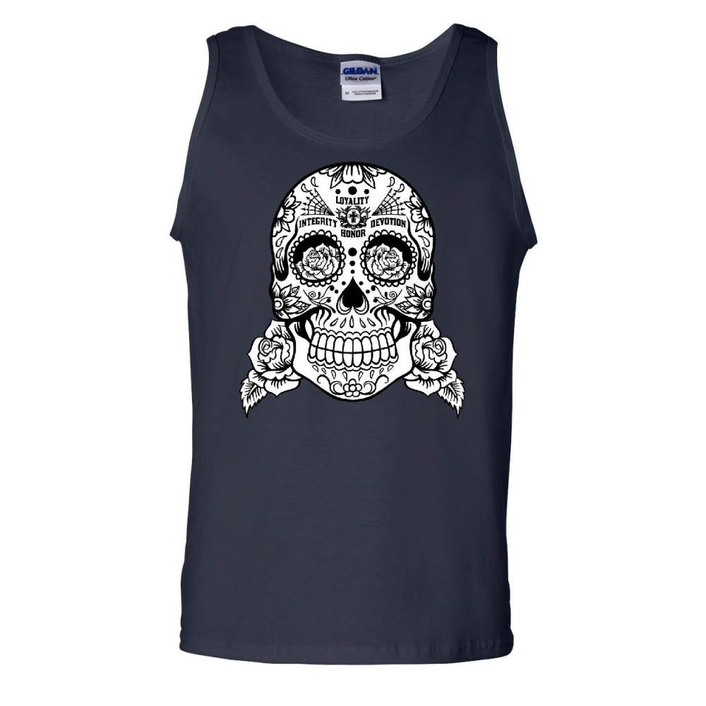 SUGAR SKULL tank top loyalty integrity devotion honor navy blue