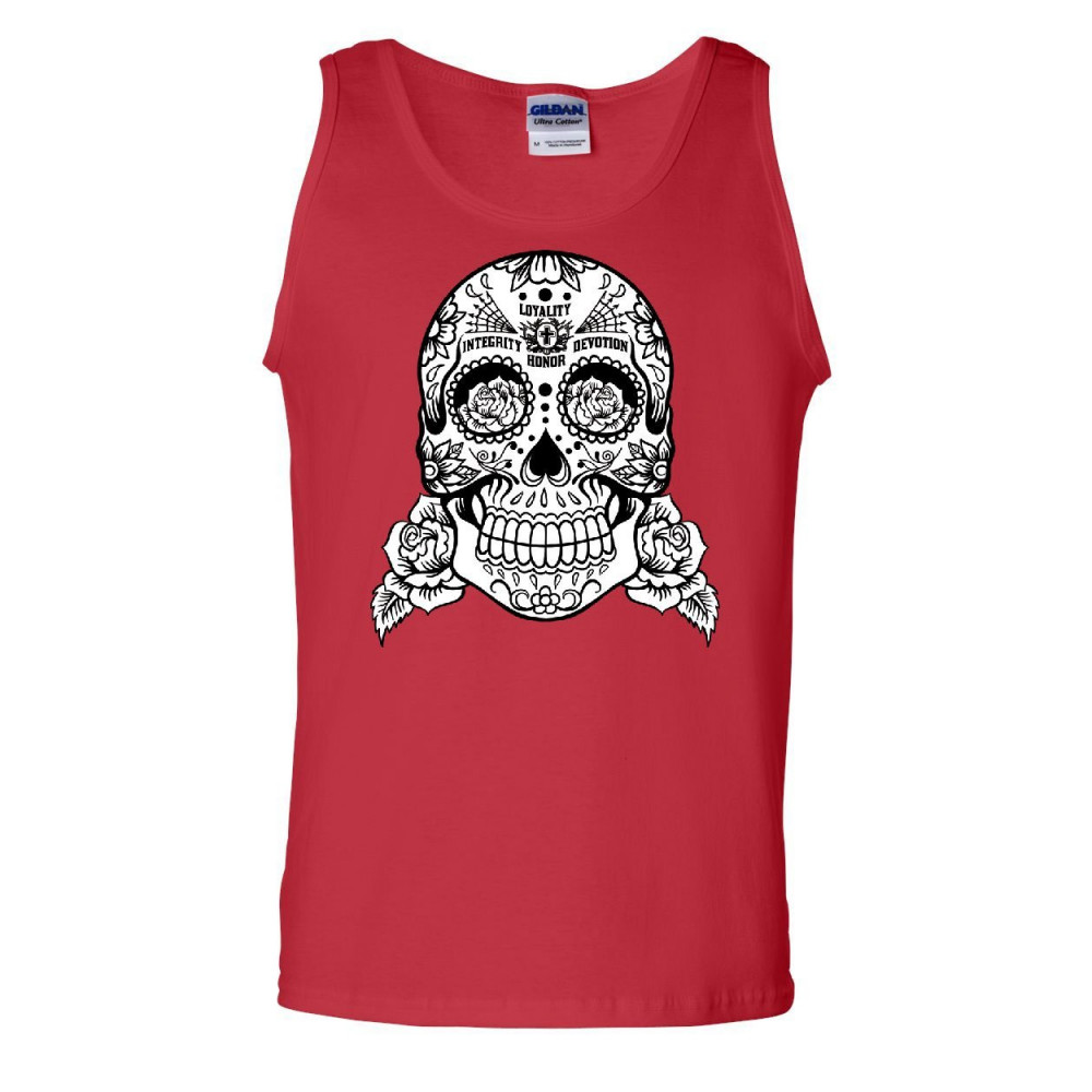 SUGAR SKULL tank top loyalty integrity devotion honor red