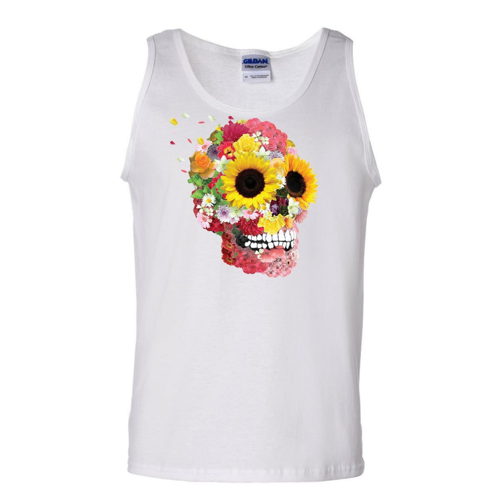 SUNFLOWERS SUGAR SKULL tank top day of the dead calavera mexico sleeveless white