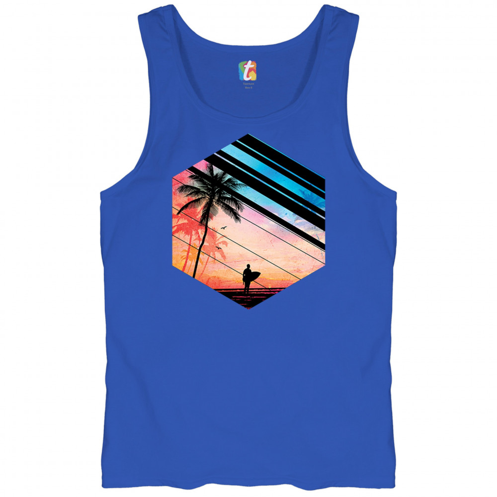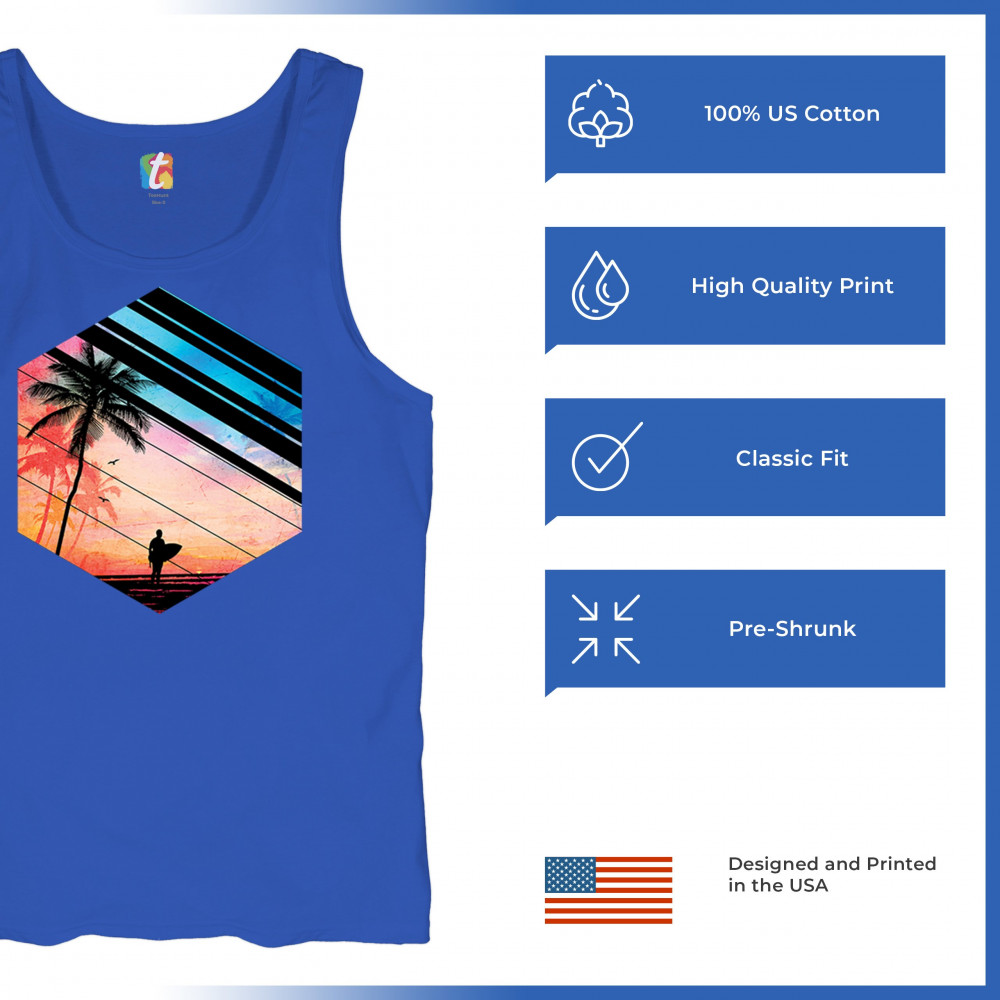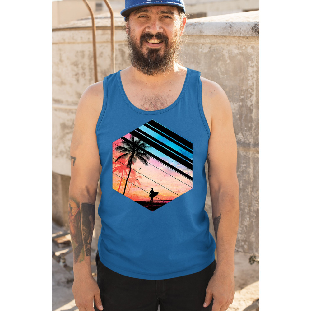 Catch the vibe of endless summer with our surf-inspired tee. Featuring silhouetted palms, warm gradients, and cool geometric shapes, it’s a visual journey from the urban grind to tropical tranquility. This tee is for the soul surfers and dreamers, made to be as enduring as the memories of your last wave. It's more than apparel—it’s a horizon of possibilities. Add this staple to your collection and let the good times roll.